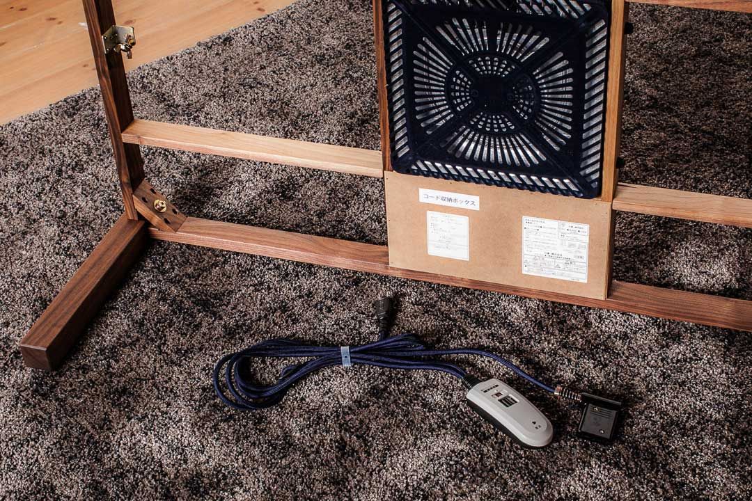 ヴィンテージ加工を施したり、今のスタイルに合う工夫を凝らしたこだわりのこたつです。