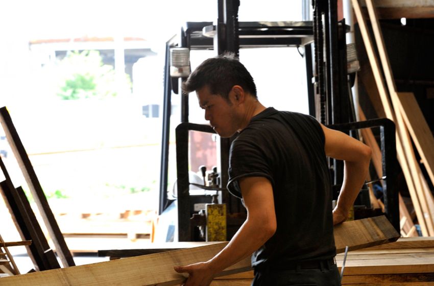 商品ごとに必要な材料を選定し材料を使えるよう、シビアに木取りしています。もちろん、端材も無駄にはしません。細かいパーツや、目には見えないところの部材として大切に使われています。