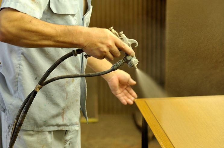 仕上げ塗装は商品によって手吹き、機械に分けて行います。静電塗装機を使用することでムラのない均一な塗膜を形成、その品質には高い評価を頂いております。