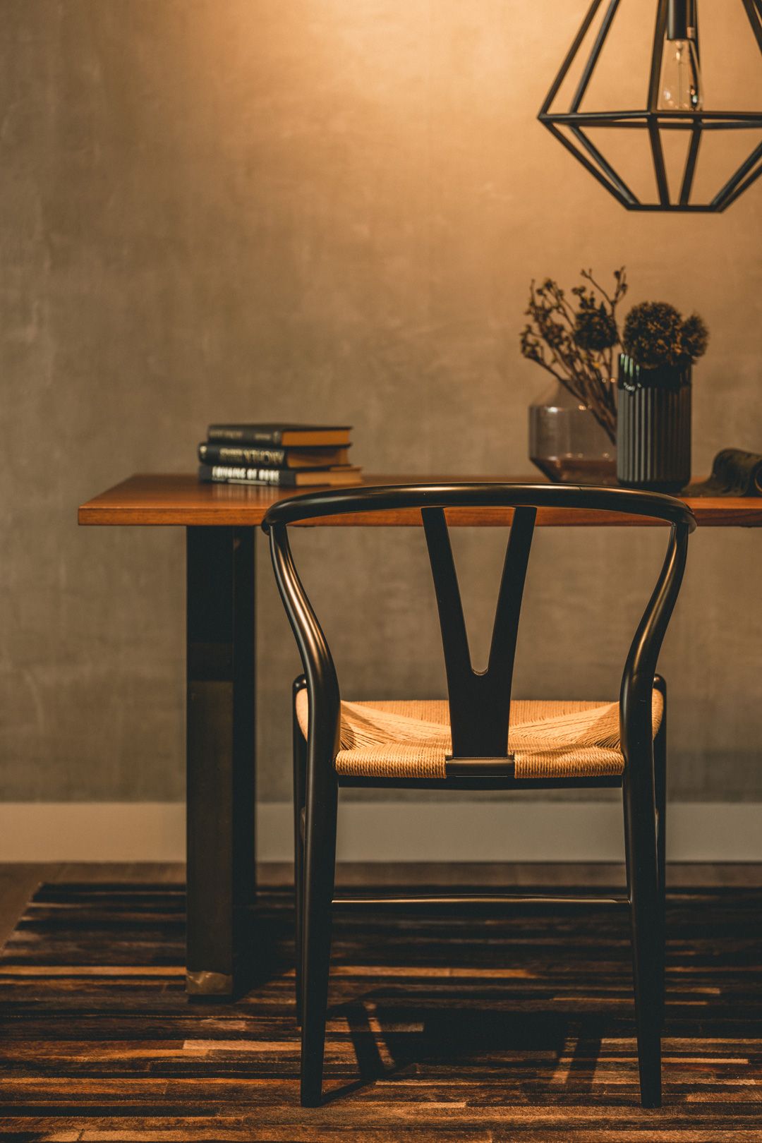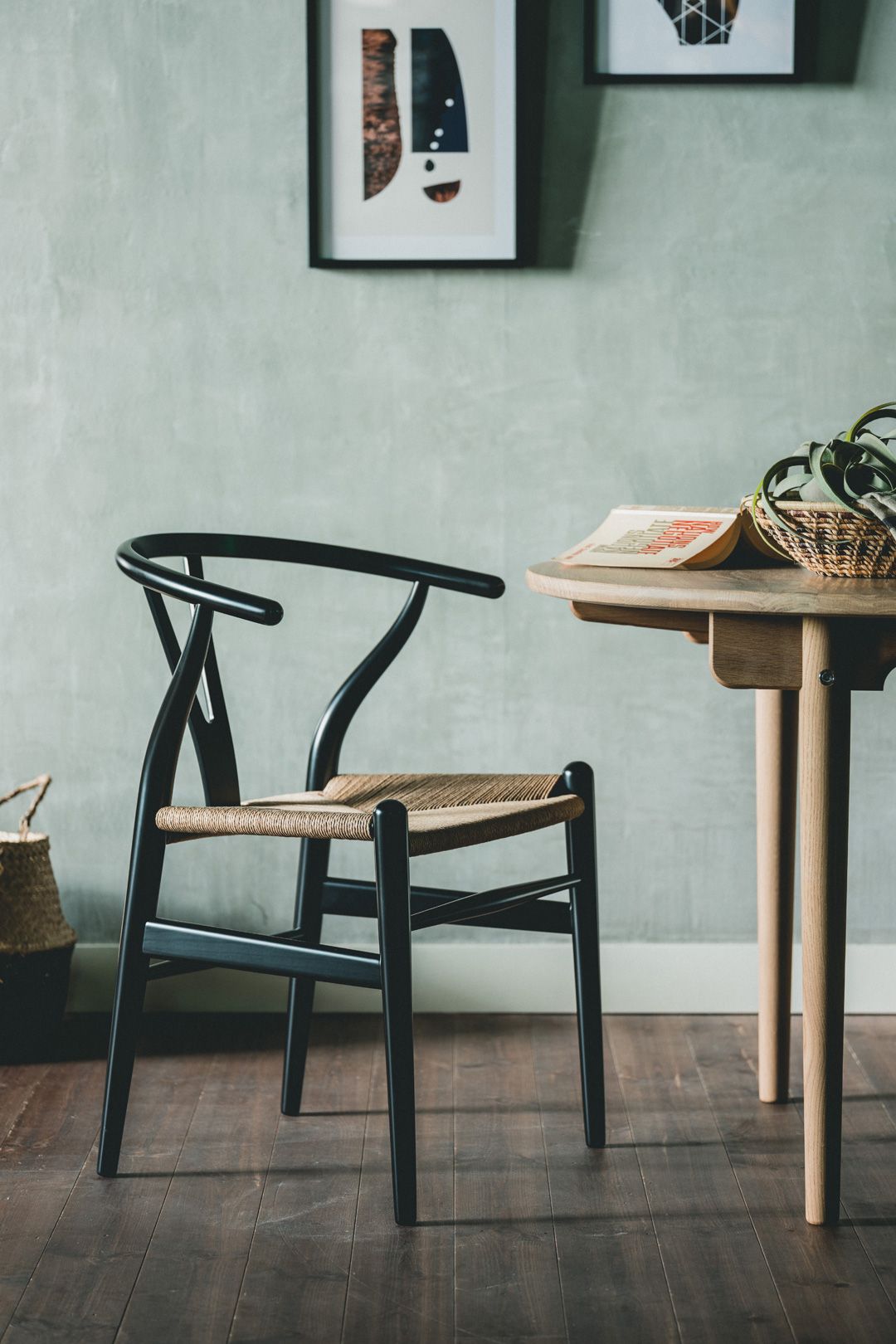 Yチェアは色々なバリエーションがあるんですが、今回選んだブラックフレームとナチュラルペーパーコードのバイカラーは特に今っぽいというか、現代の空気に合っている感じがあります。コーディネート的にも、2色で構成されていることによってナチュラルなテイストともモダンなテイストとも相性がいい。それと、ブラックフレームは明るい壁面に合わせるとアウトラインが映えてより美しく見えます。