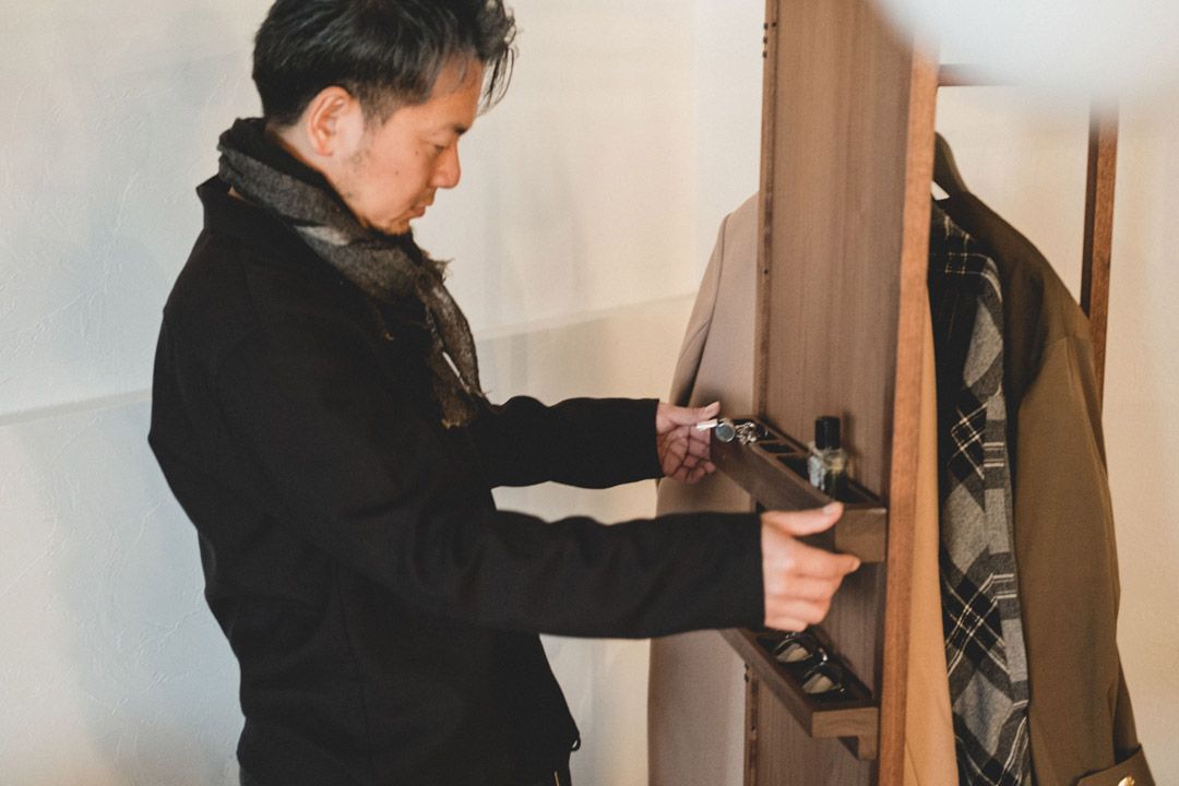 インテリア&プロップスタイリストの窪川勝哉さんが、毎号Rignaのアイテムの中から1アイテムをピックアップ。そのアイテムのまだ見ぬ魅力を引き出す「映え」なワンカットをスタイリングしてもらう連載企画。第13回は、伝統技術である紐蝶番を用いながら、現代的な造形と機能性にデザインされた「スパーゴ ハンガーラック ハイ」です。