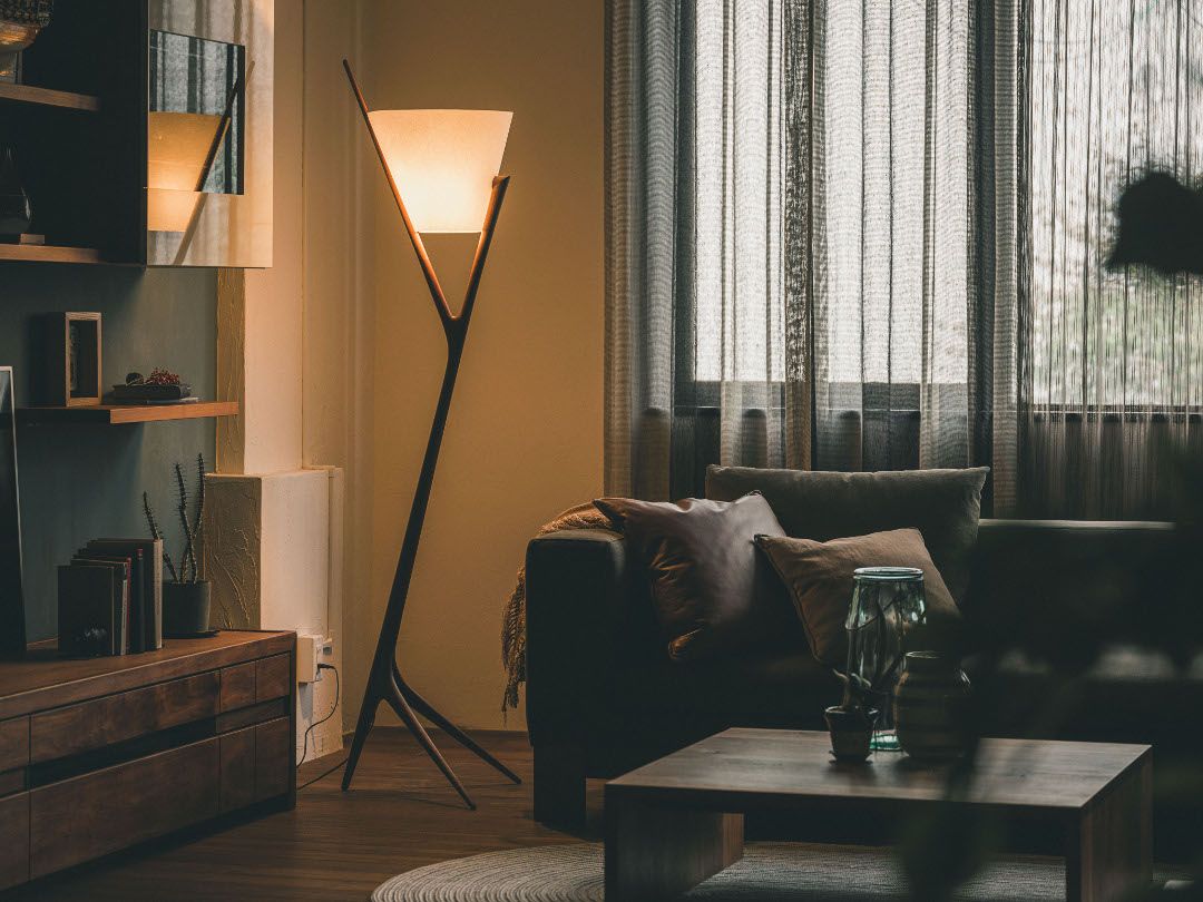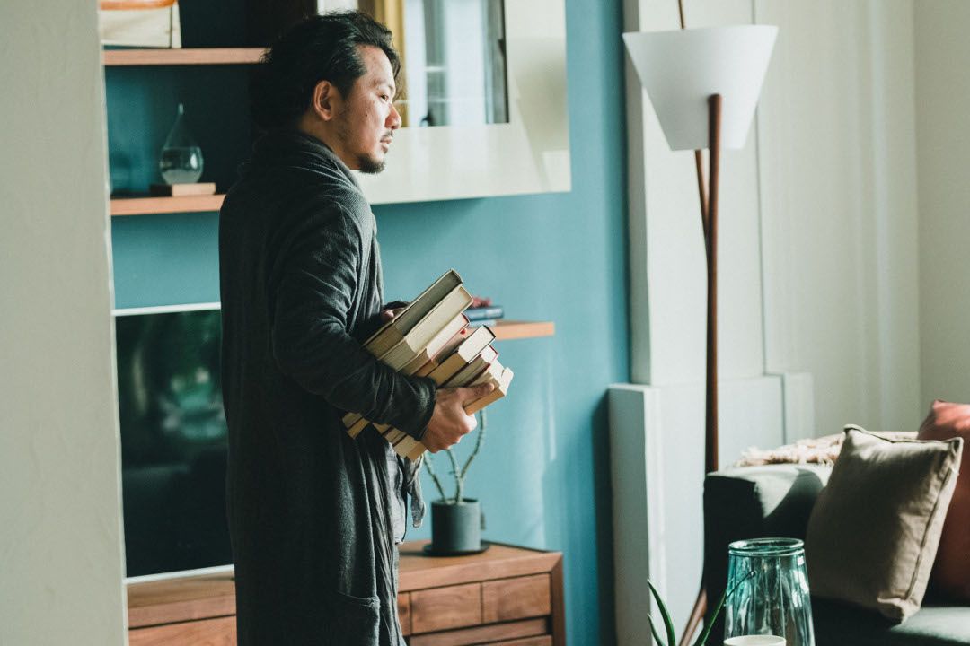 ソファの横に何か背の高いものを置こうとすると観葉植物とコートスタンドとスタンドライトの3択くらいになるんです。気をつけないと部屋は床置きの家具ばかりになるから、例えばダイニングテーブルもソファもだけど高さが900mm以下くらいで終わっちゃう。空間の上の部分がすっぽり抜けちゃうから、ある程度の高さのあるスタンドライトを置くとバランスがよくなるし、そこに光の演出もプラスされるので、間接照明っていうのはすごく重要かな。天井照明だけで、部屋全体を明るくしようとすると空間の表情がのっぺりしちゃうので色んなところから光を当ててあげると、人物のポートレートを撮る時と同じように表情豊かになります。