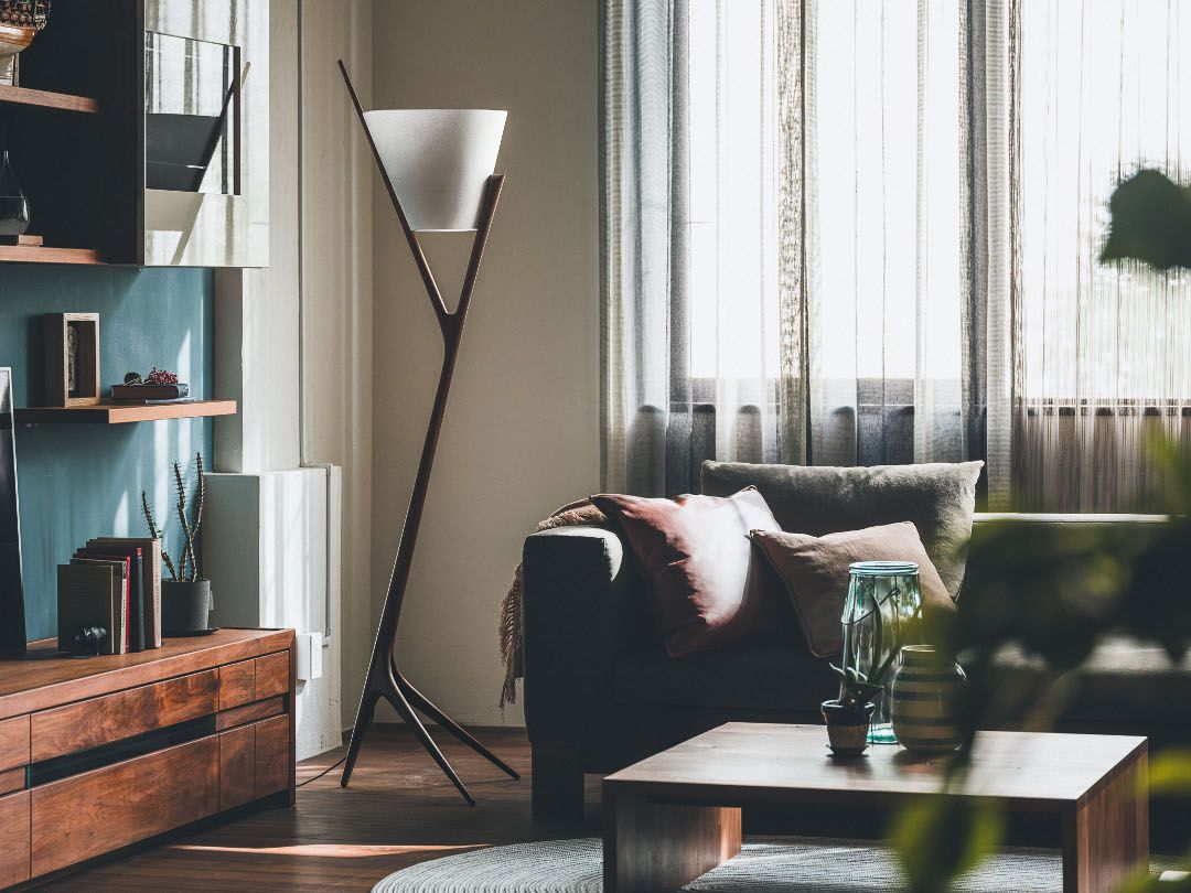 まずスタンドライトは空間の印象を左右するので重要なんですよ。例えばこの大きさのコートハンガーがあるよりも、スタンドライトはそれ自体の存在感に加えて、光を発生させるので更に周りの物にも影響を及ぼすんですよね。