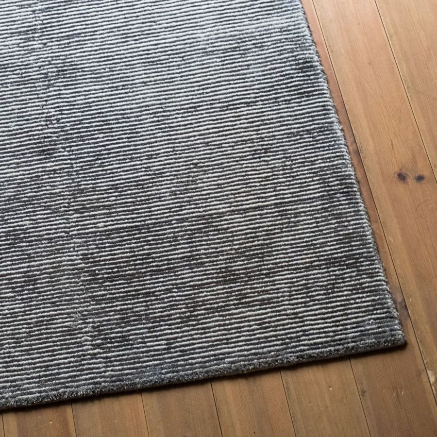 無地なんだけど、ちょっとだけストライプ。かすれたような、ぼやっとしたようなストライプ。完全な無地じゃなくて、はっきりしたストライプでもない、こういうラグが実は一番合わせやすかったりします。上品な印象もありつつカジュアルさも備えたちょうどよいバランス。ラグ敷きたいけど、どれがいいかわかんないって人におすすめ。大体マッチします。