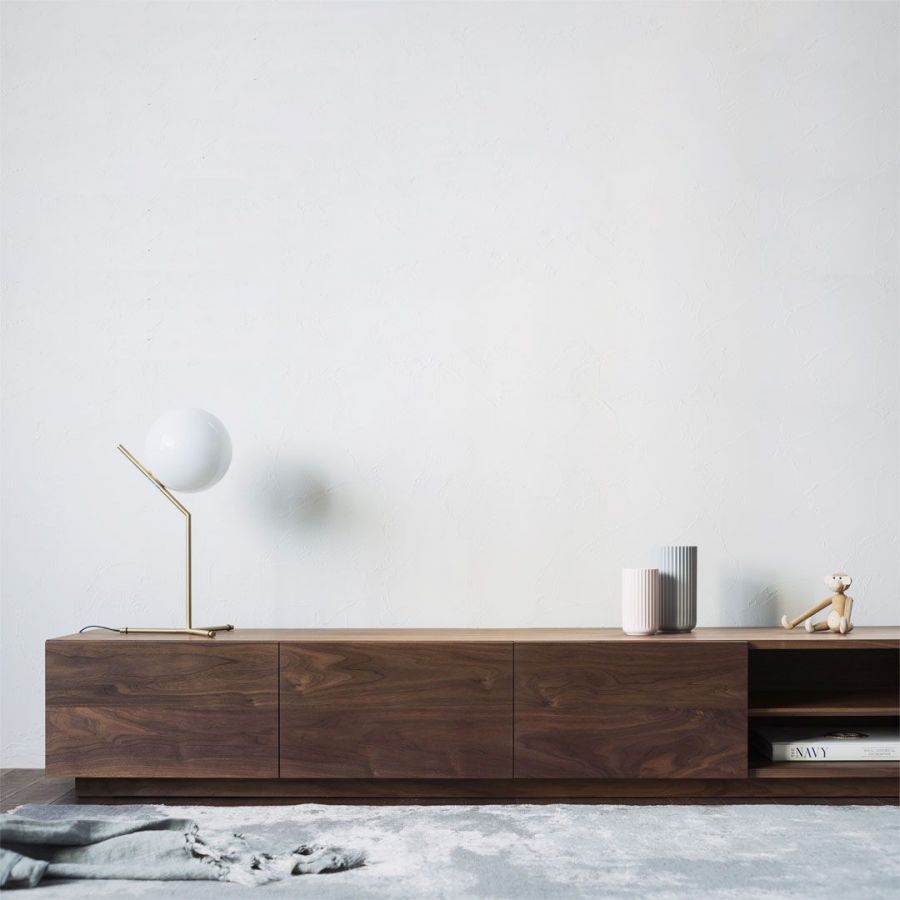 ひっそりと静かで、しんとした空気感から、「HITSU(謐)」と名付けられたAVボード。単純さを突き詰めながらも、ひとつひとつのディテールを丁寧に扱う。そうして生まれる佇まいには、控えめでありながら、ただのベーシックとは違う「洗練」を感じ取ることができます。ブラックガラスや凝ったスリット意匠を用いるようなわかりやすい高級感、美しさではなく、上質でありつつ普通、日常に溶け込む上質さを求めてデザインされました。
