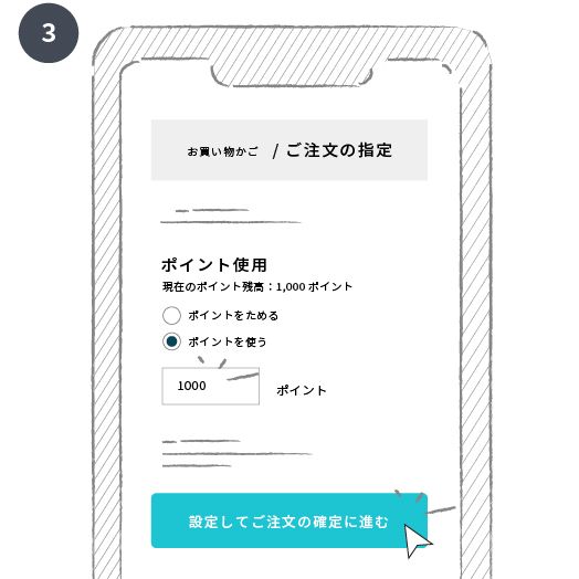 貯めたポイントは1pt=1円、最低1ptからご使用いただけます。
