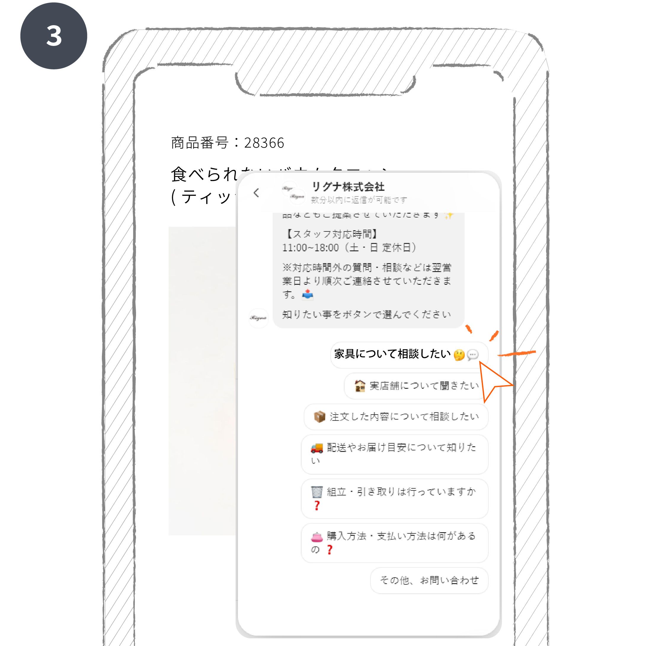オンラインショップで商品を眺めていると、「この商品の仕様についてもっと知りたい」「この商品のテイストに似た家具をおすすめしてほしい」など、さまざまな疑問が湧いてくることもあるかと思います。