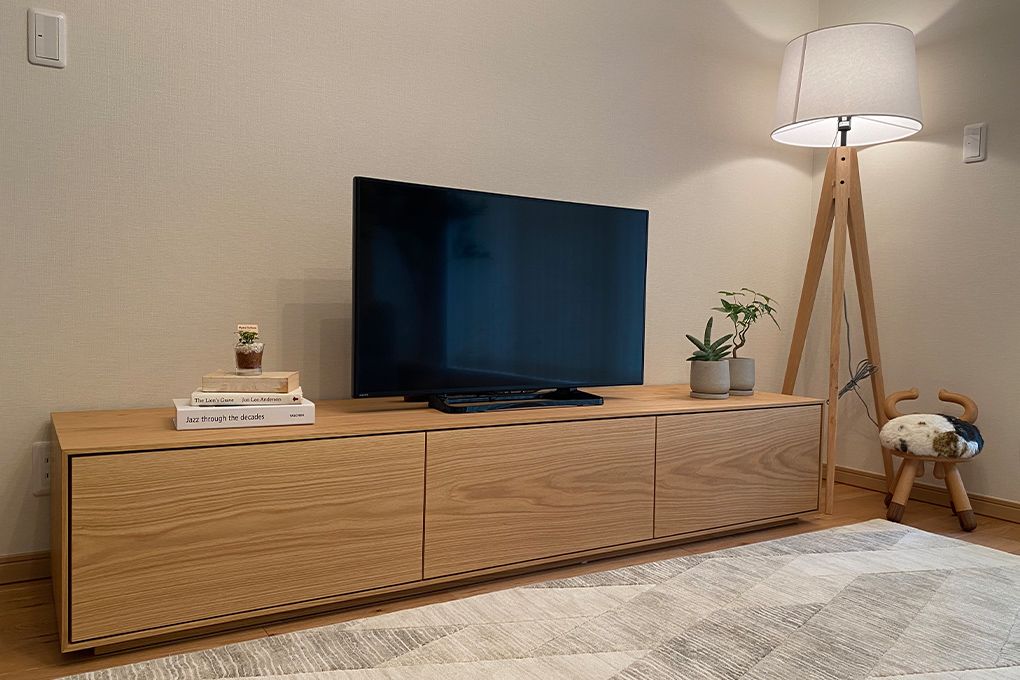 木目が綺麗に繋がっていて、空間に溶け込みながら暖かさと高級感を味わえる
