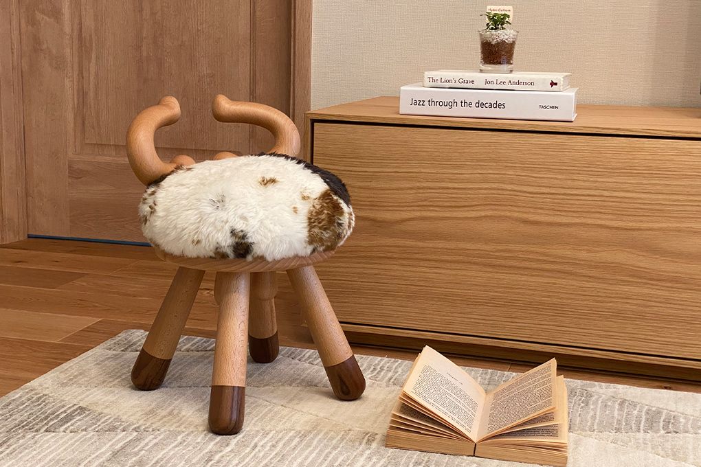 こちらはちょこんと小さな体にぎゅっと魅力が詰まった”COWチェア”