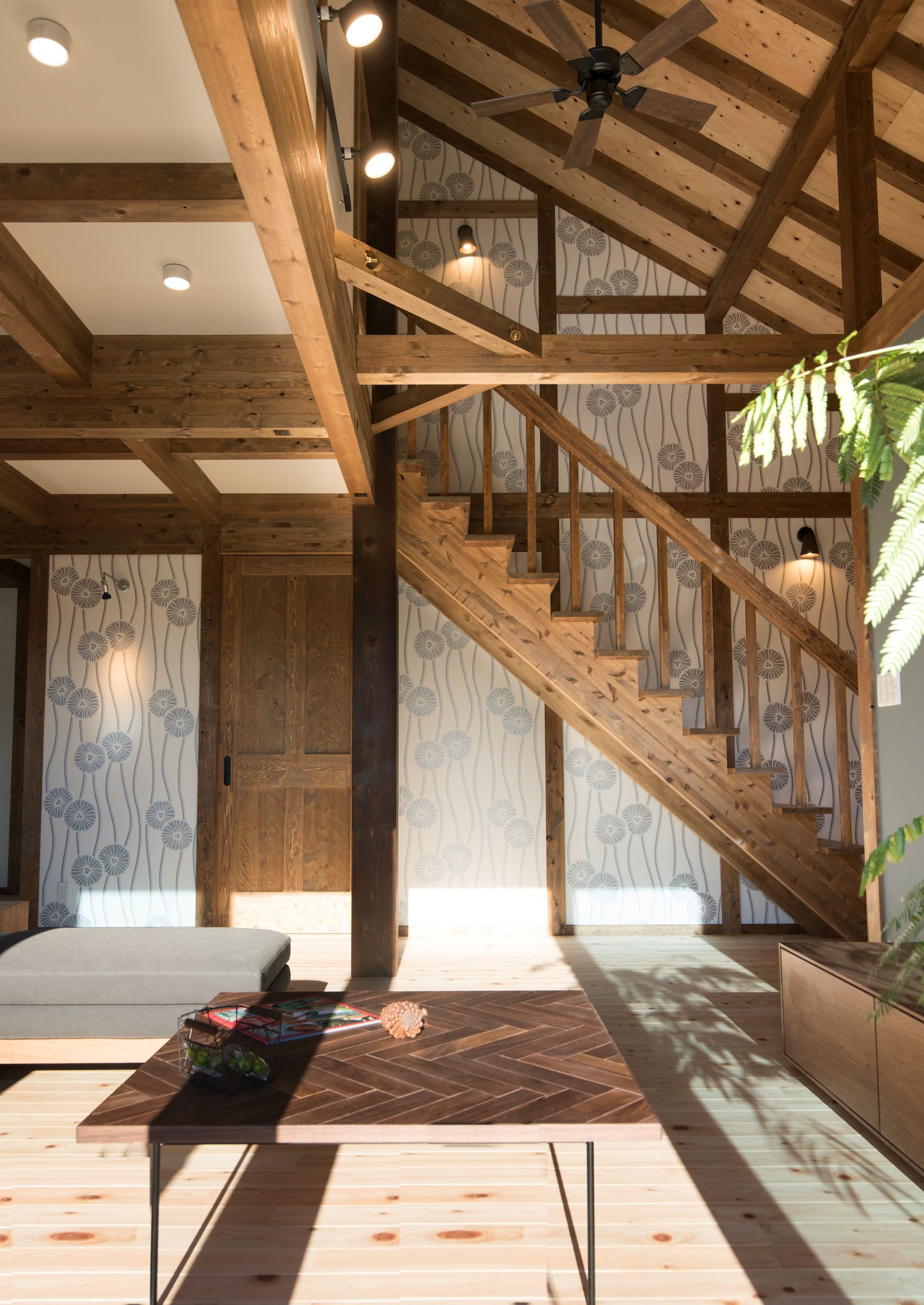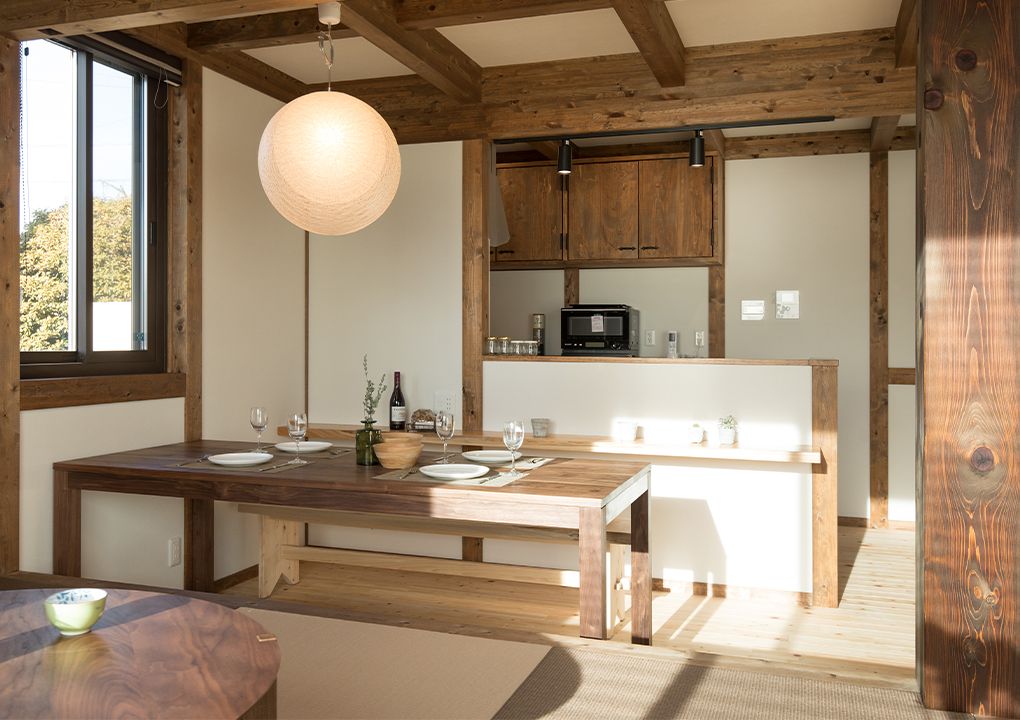 柱や梁といった家の構造材が室内に現しになっていて、木のぬくもりを「見て」「触って」「感じる」ことができます。