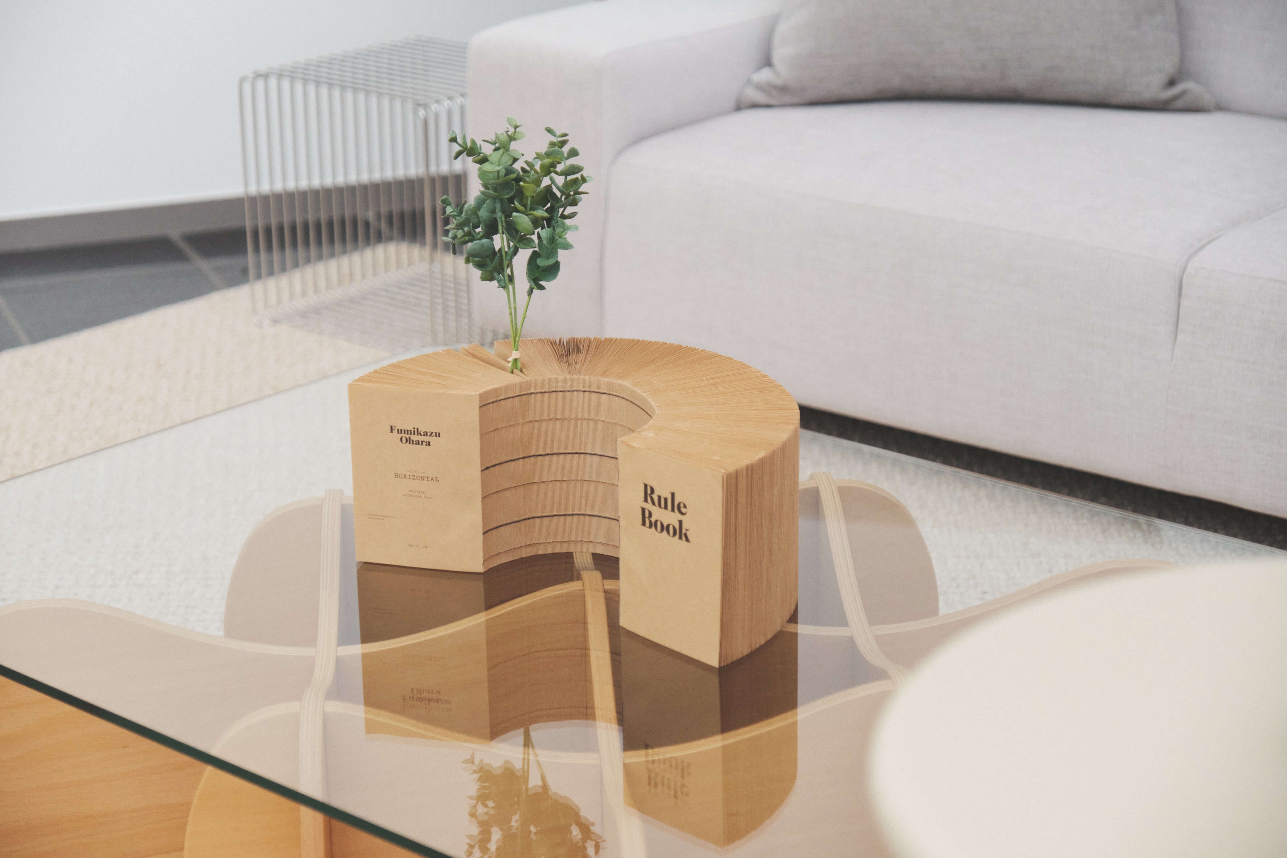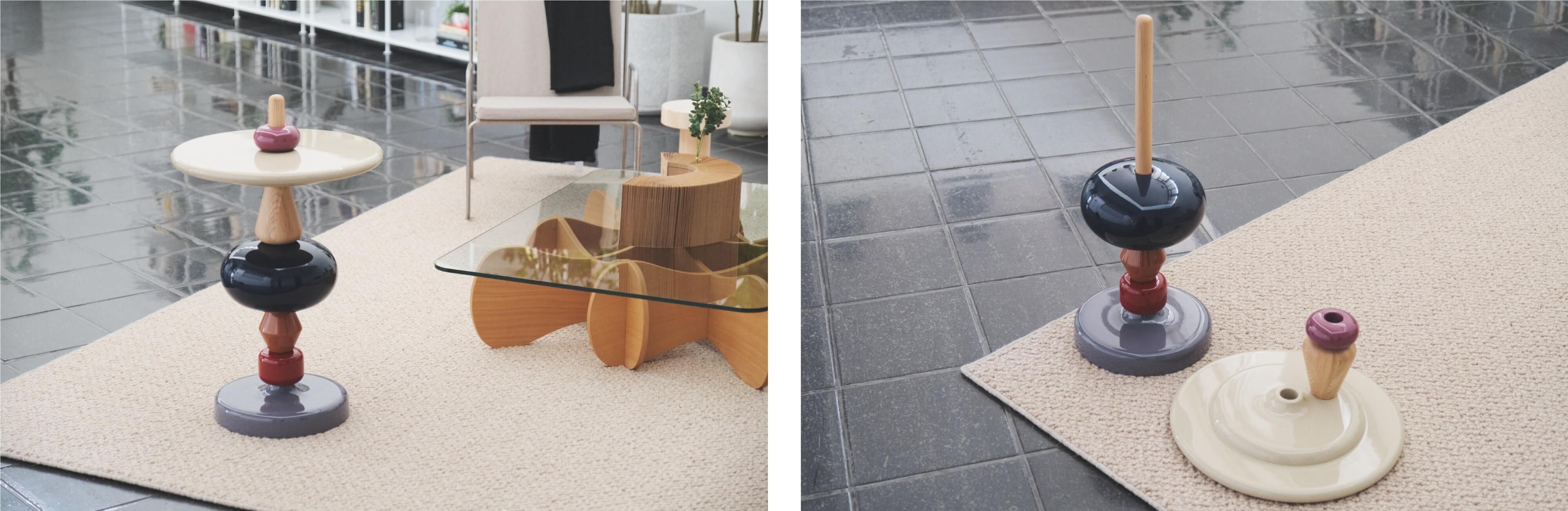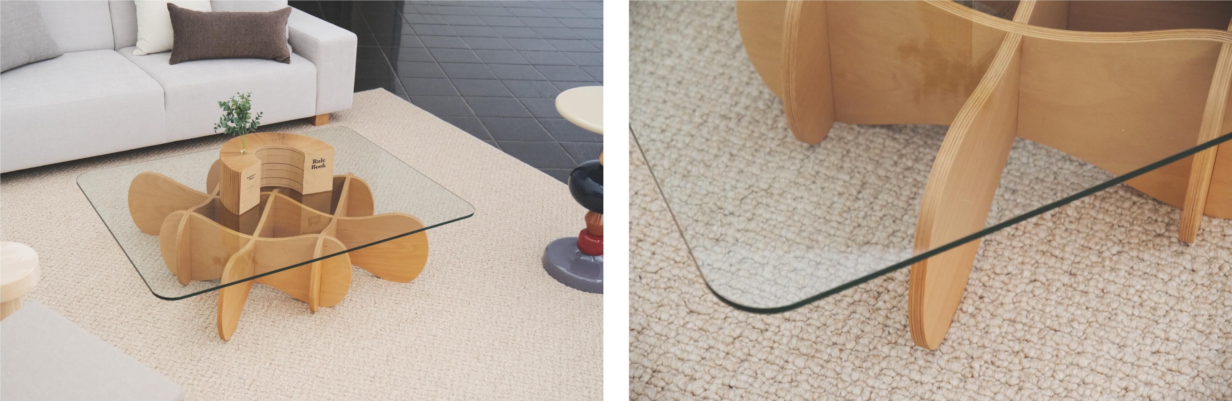 天板のガラスから、不思議なベースのフォルムを様々な角度から楽しむことができます。