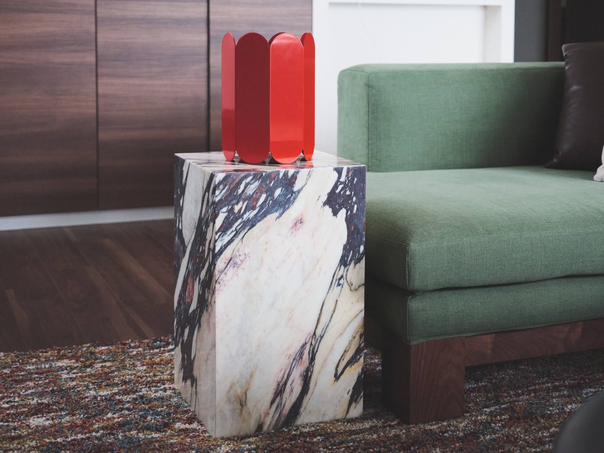 目や心を刺激するフォルムやカラー、様々な素材を並べた、”住む非日常”がテーマのお部屋です。