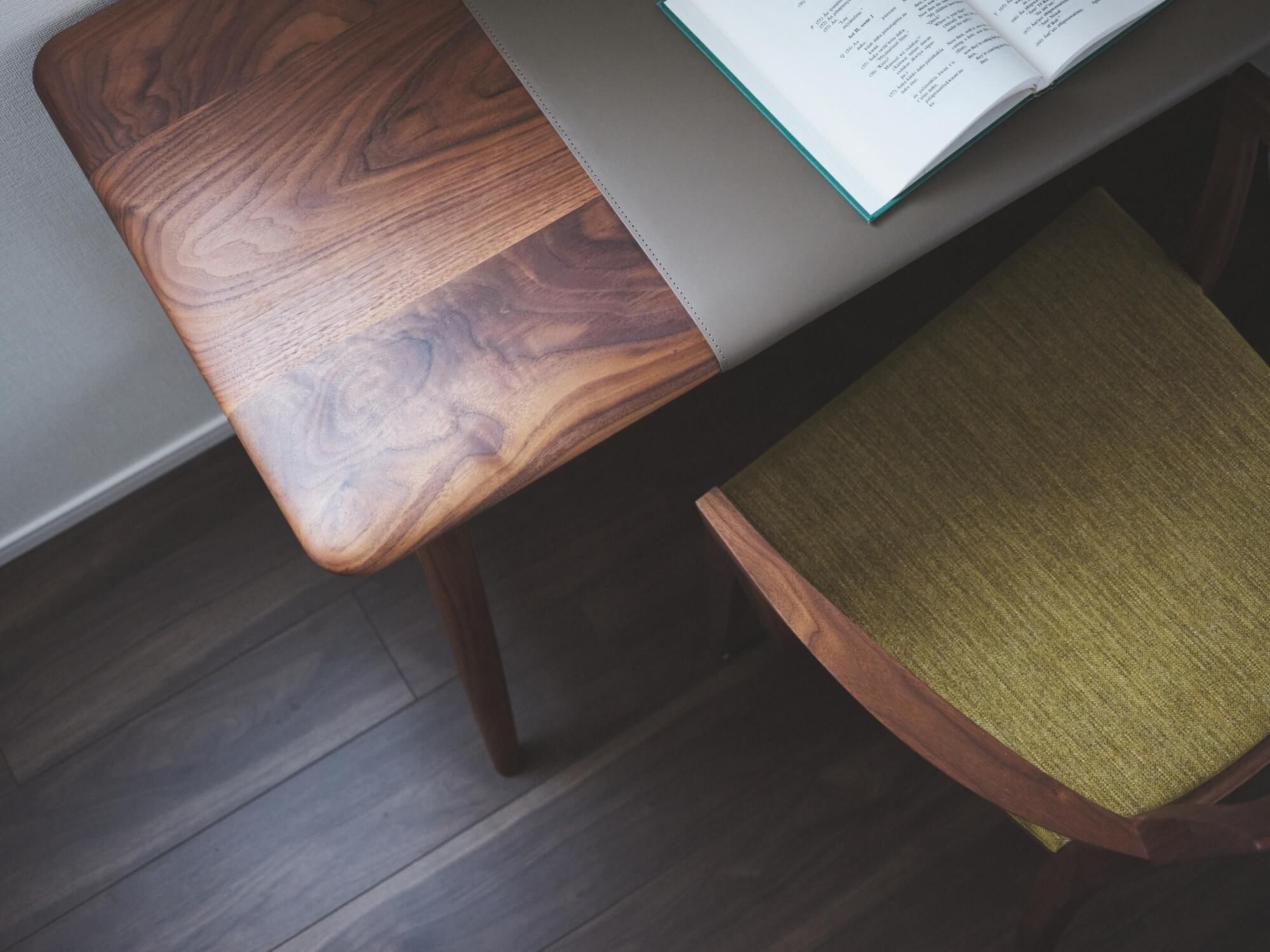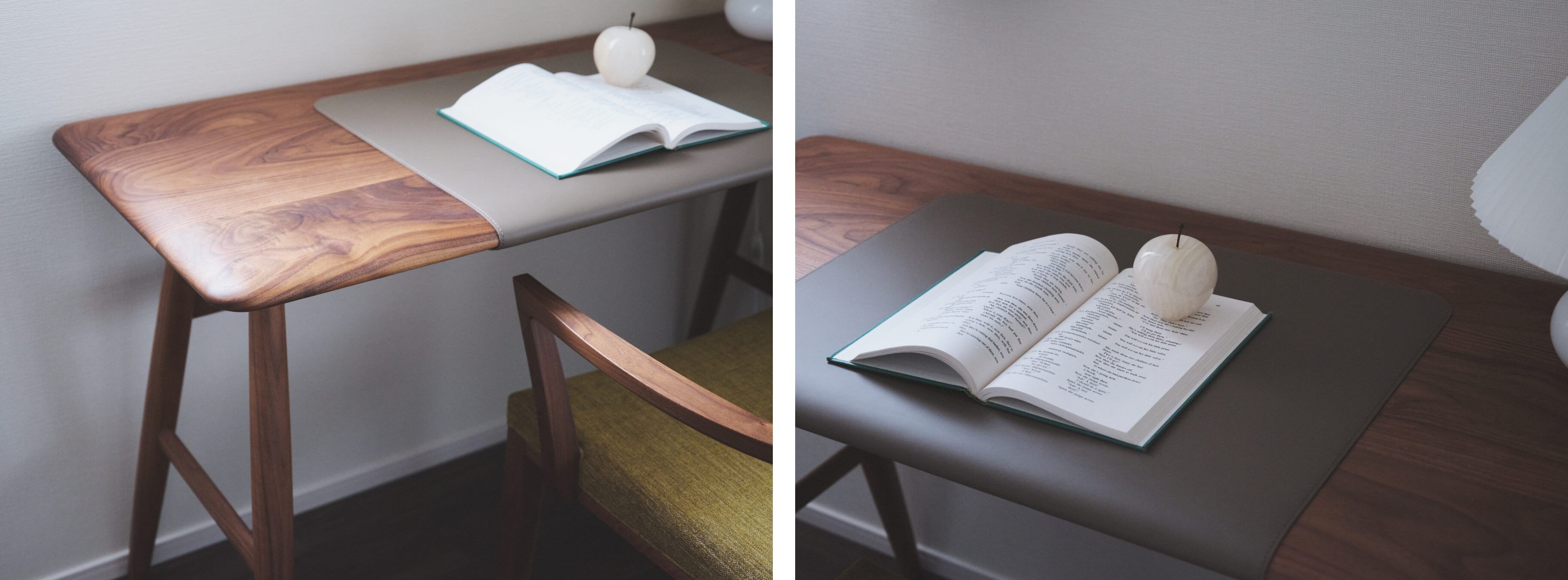 ずっと眺めて、ずっと触れたくなる。厚革パットが張り込まれたレザーデスクです。