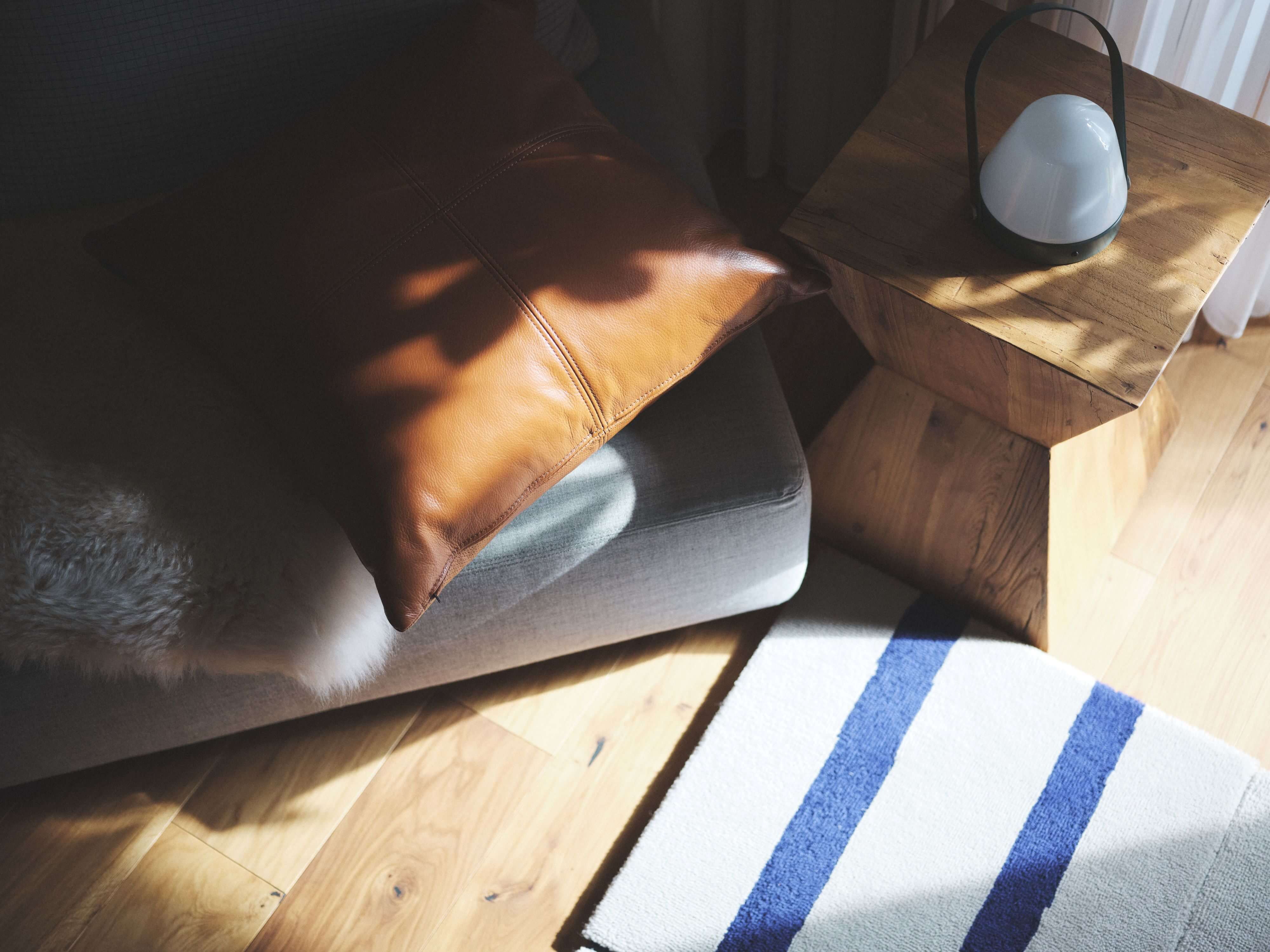汚れも傷も、なにもかも受け止めてくれるレザークッションは「家族の一員」