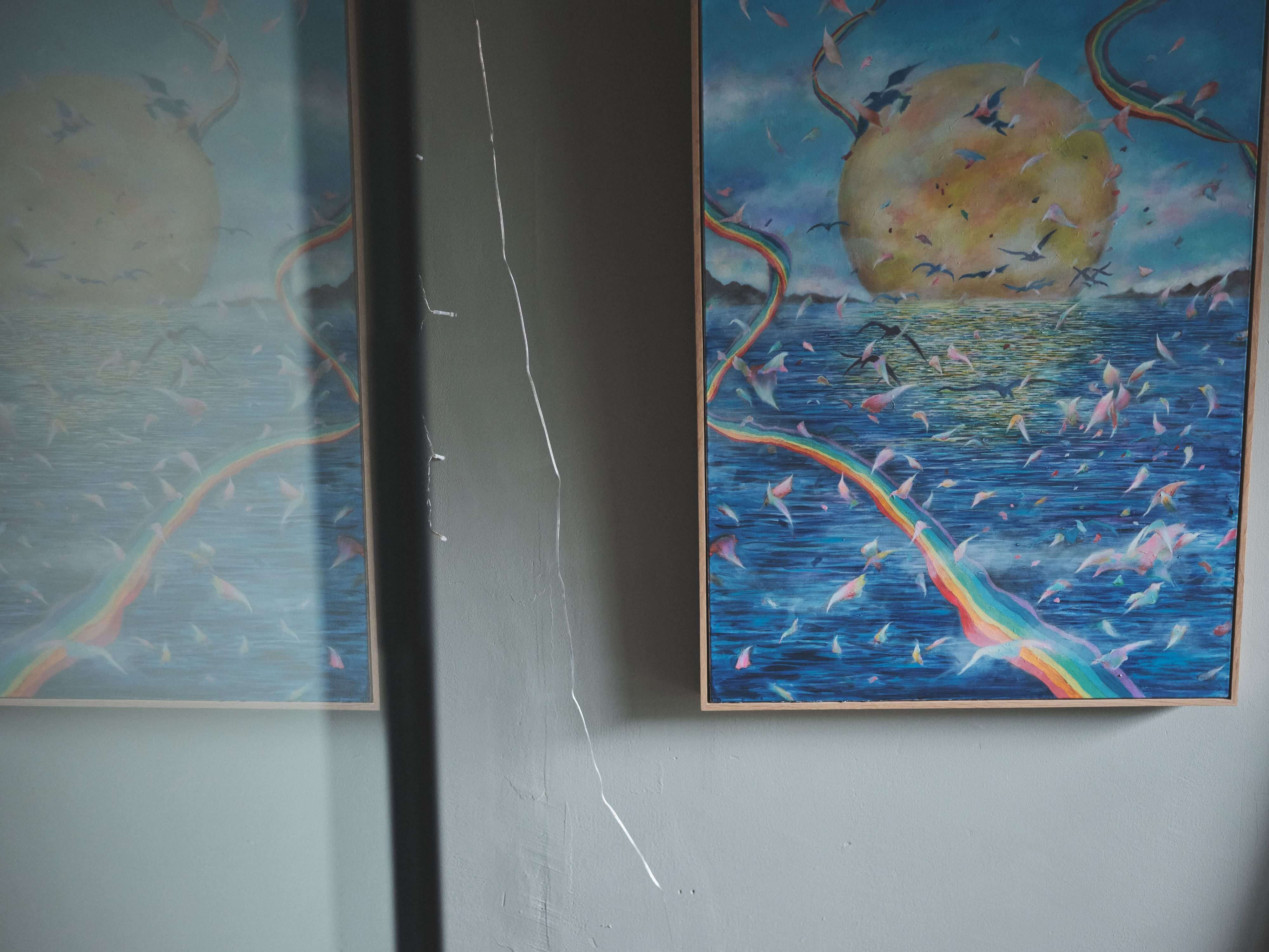 薄く塗り分けたグレーのグラデーションの壁だって、うっとりするような1つのシーン。