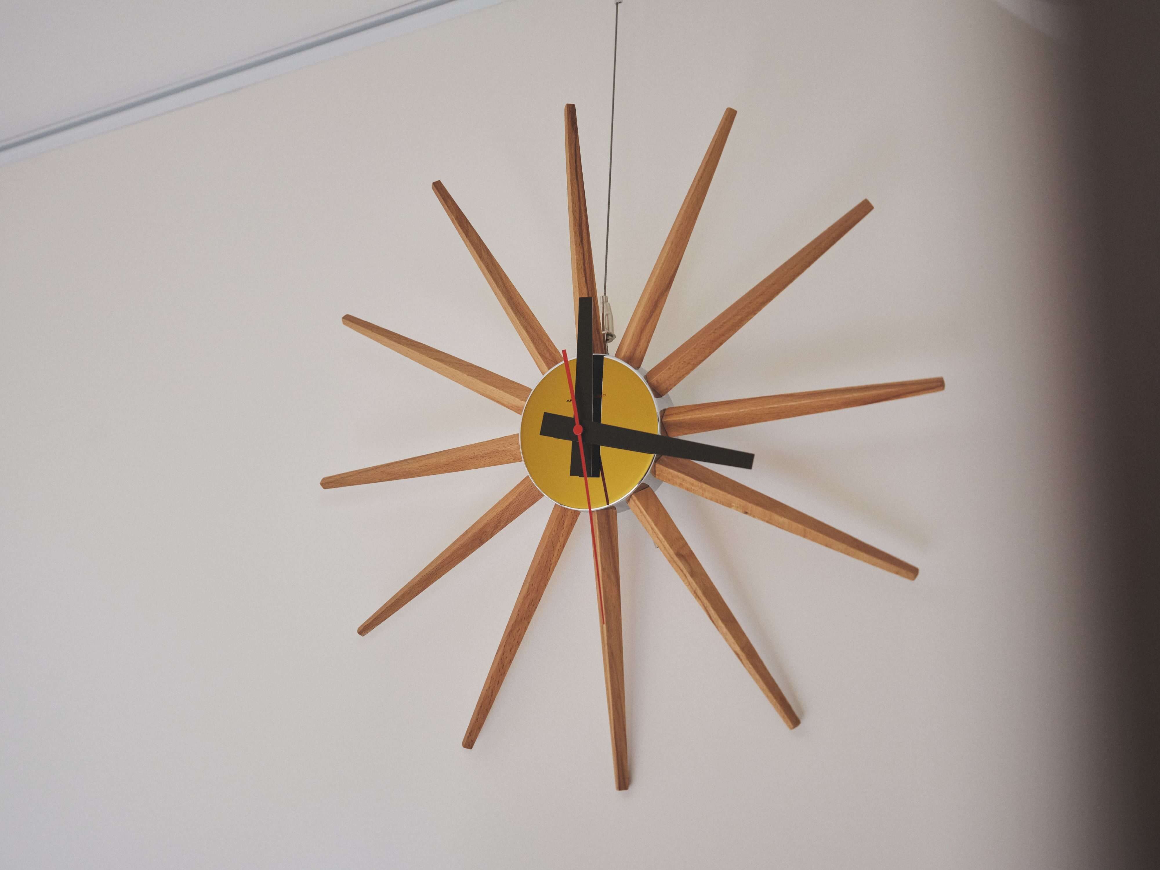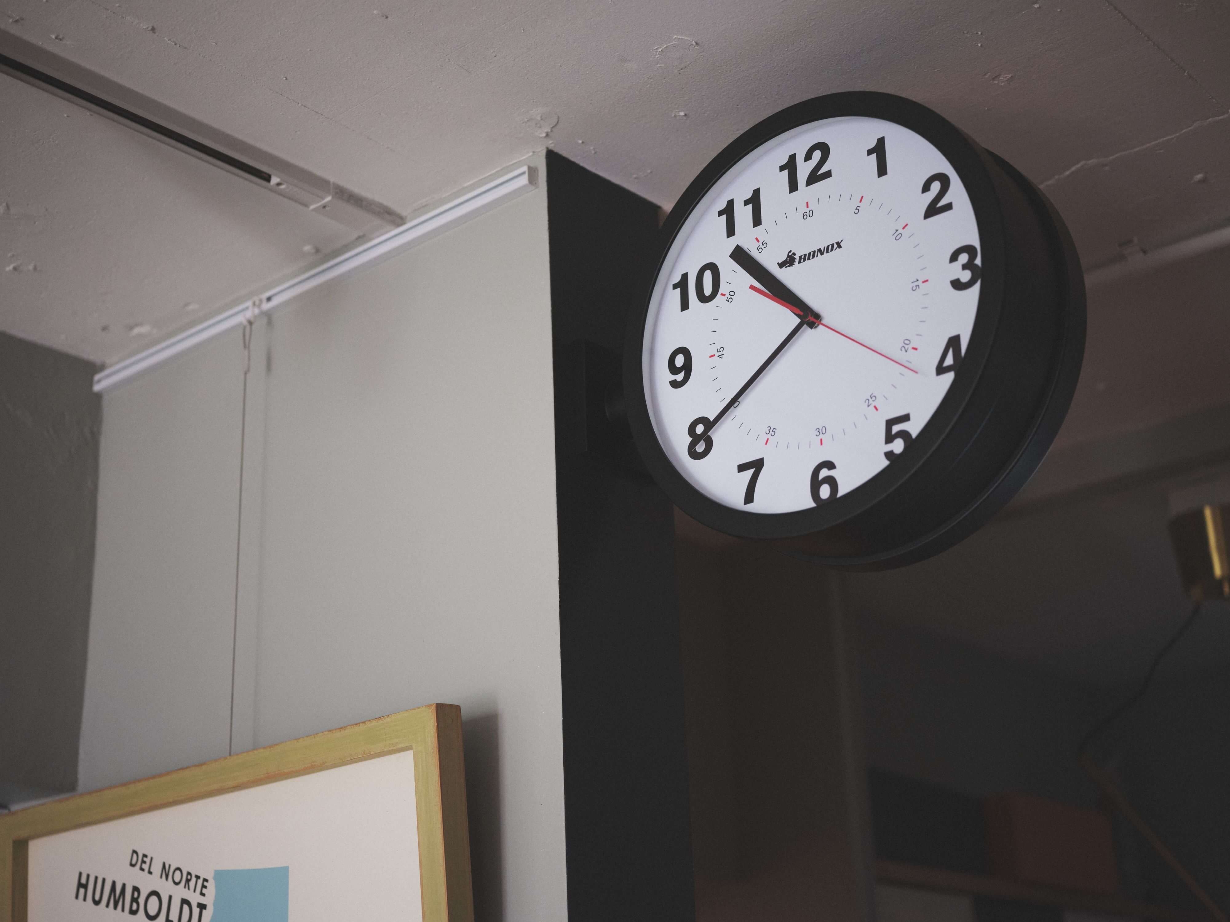 リビングのどこからでも見える、裏表なしの壁掛け時計。
