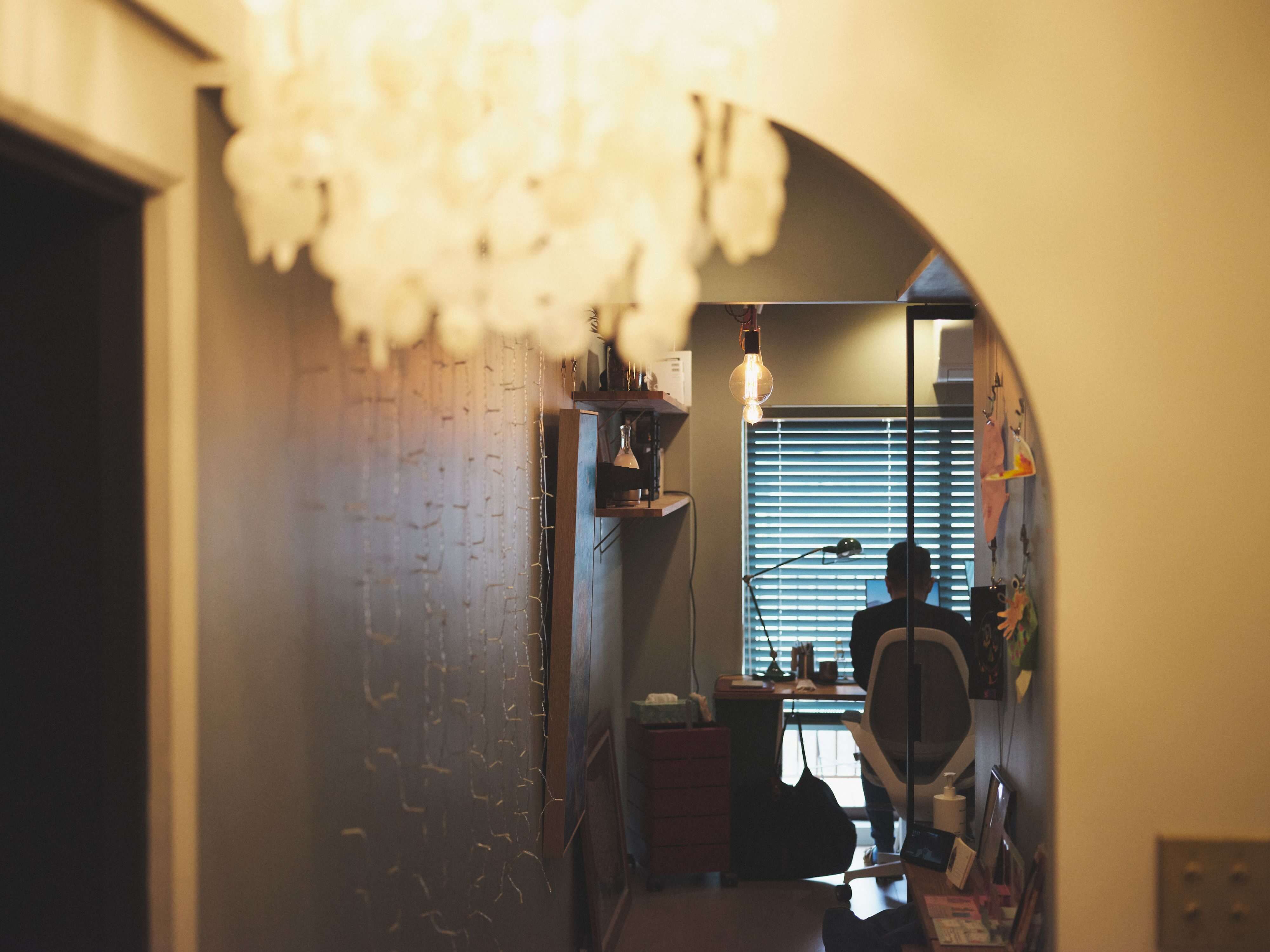 このライトのくの字のラインが、お部屋のアクセントになり、動きのある空間を作ってくれているのです。