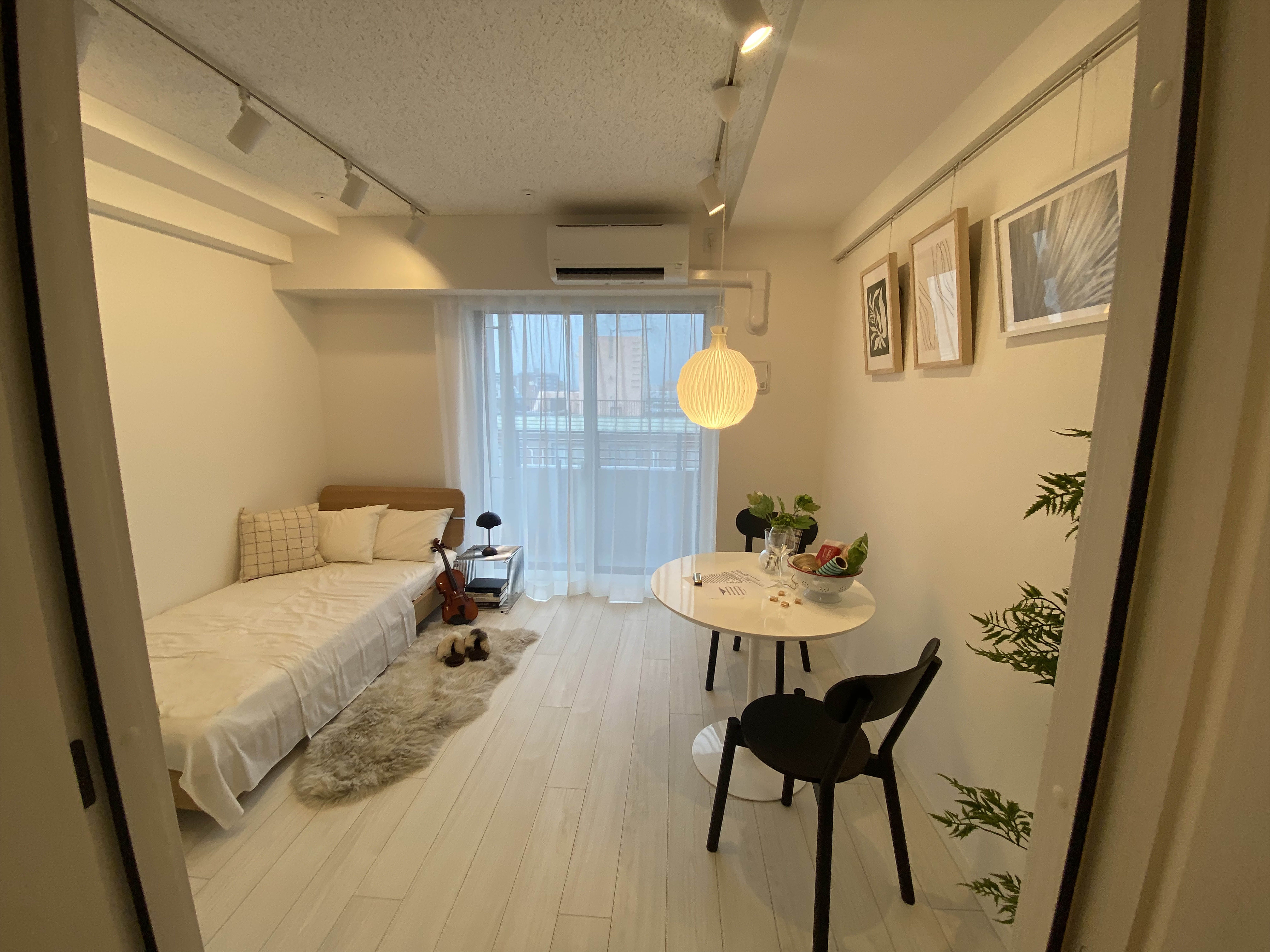 真っ白な美しい内装のお部屋をどうお化粧しようかと悩みましたが、今回はモダンに、シンプルで︕