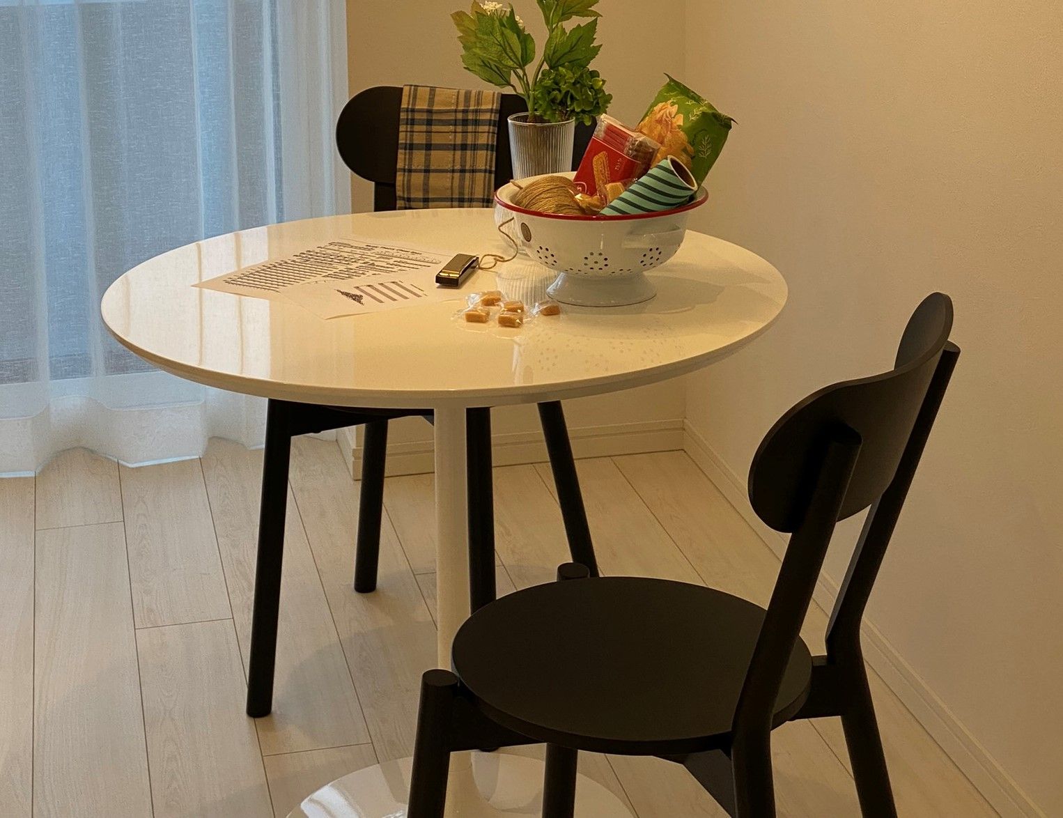 円形テーブルは角がないからずれても気にならないし、片付けが苦手でちょっぴりルーズな性格なのよ・・・というアナタにもオススメです。