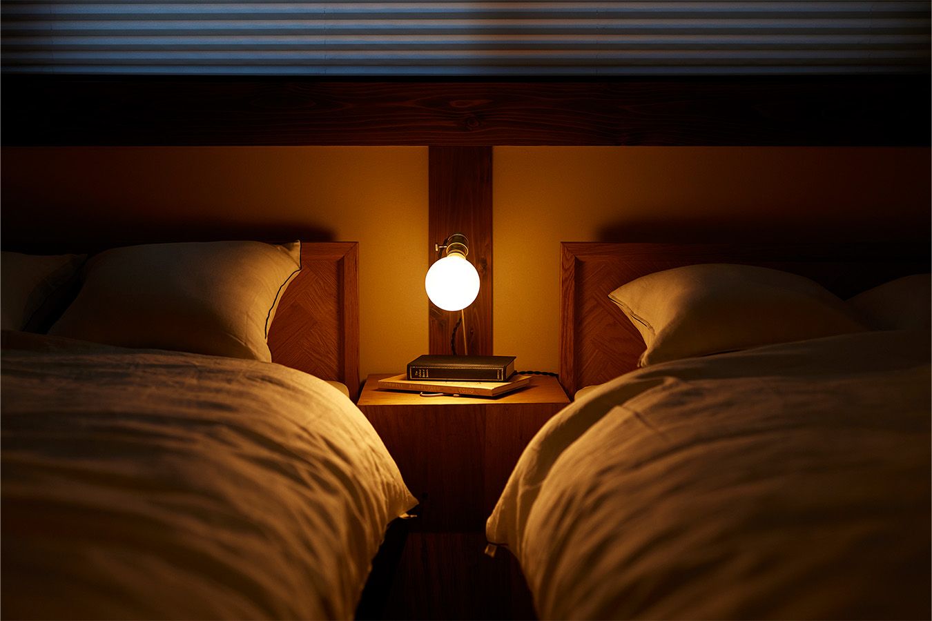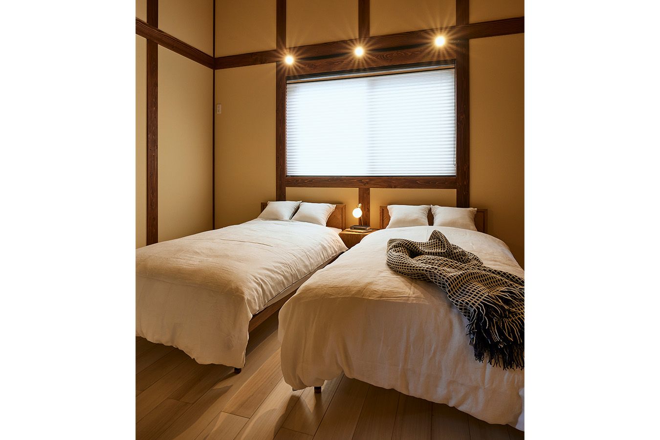 木のぬくもりに包まれて、毎日ぐっすり眠れそうなベッドルーム。