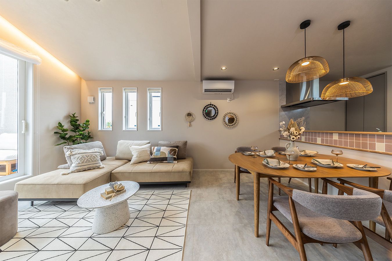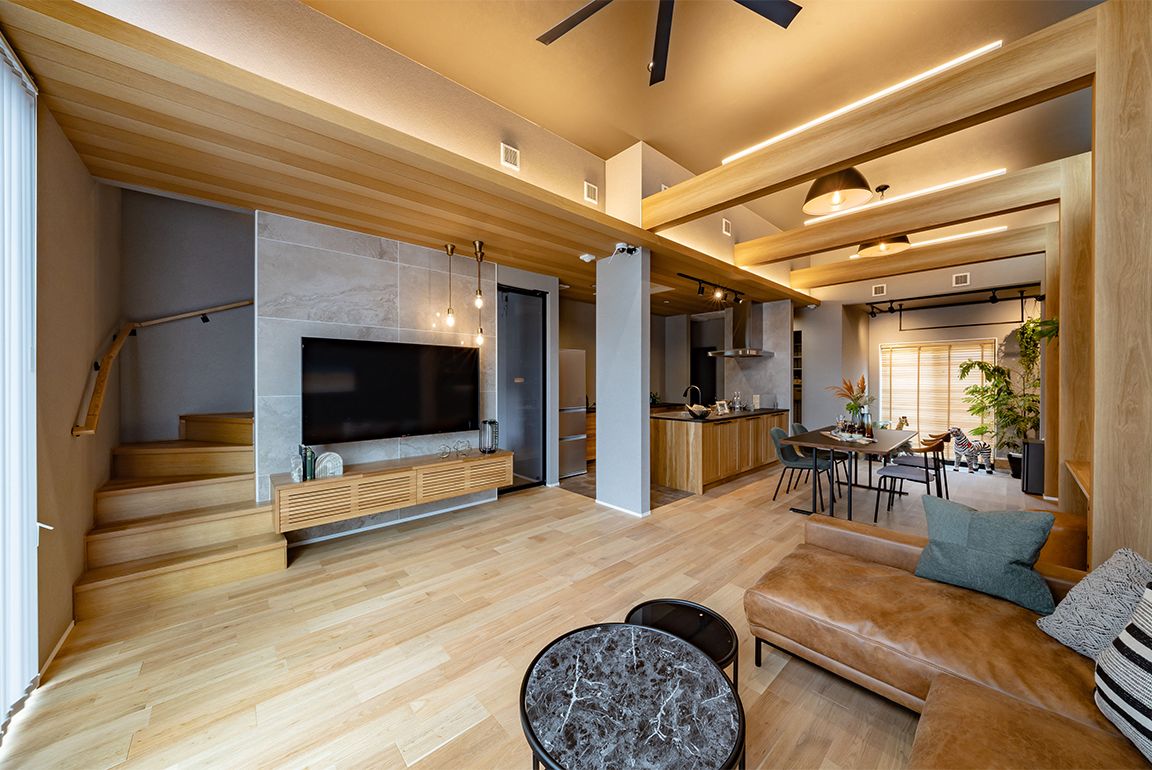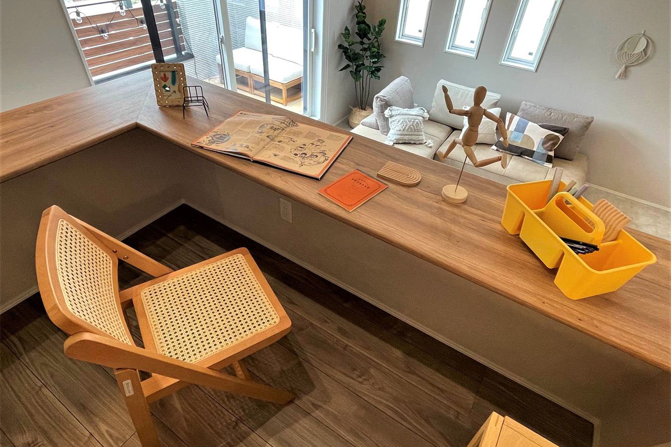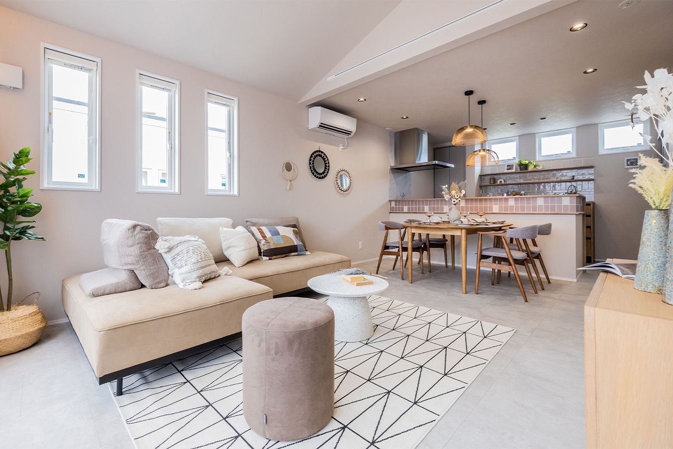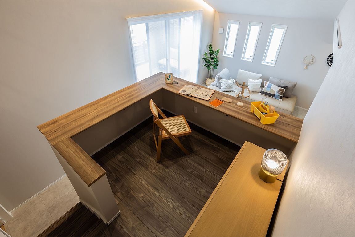 1階とはガラッと雰囲気が変わる2階のLDK。奥様目線の明るい内装デザインで設計されています。