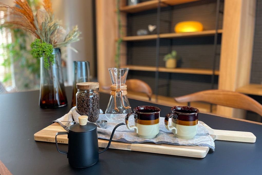 キッチンの小物もコーヒー好きな家主のイメージでスタイリング。
