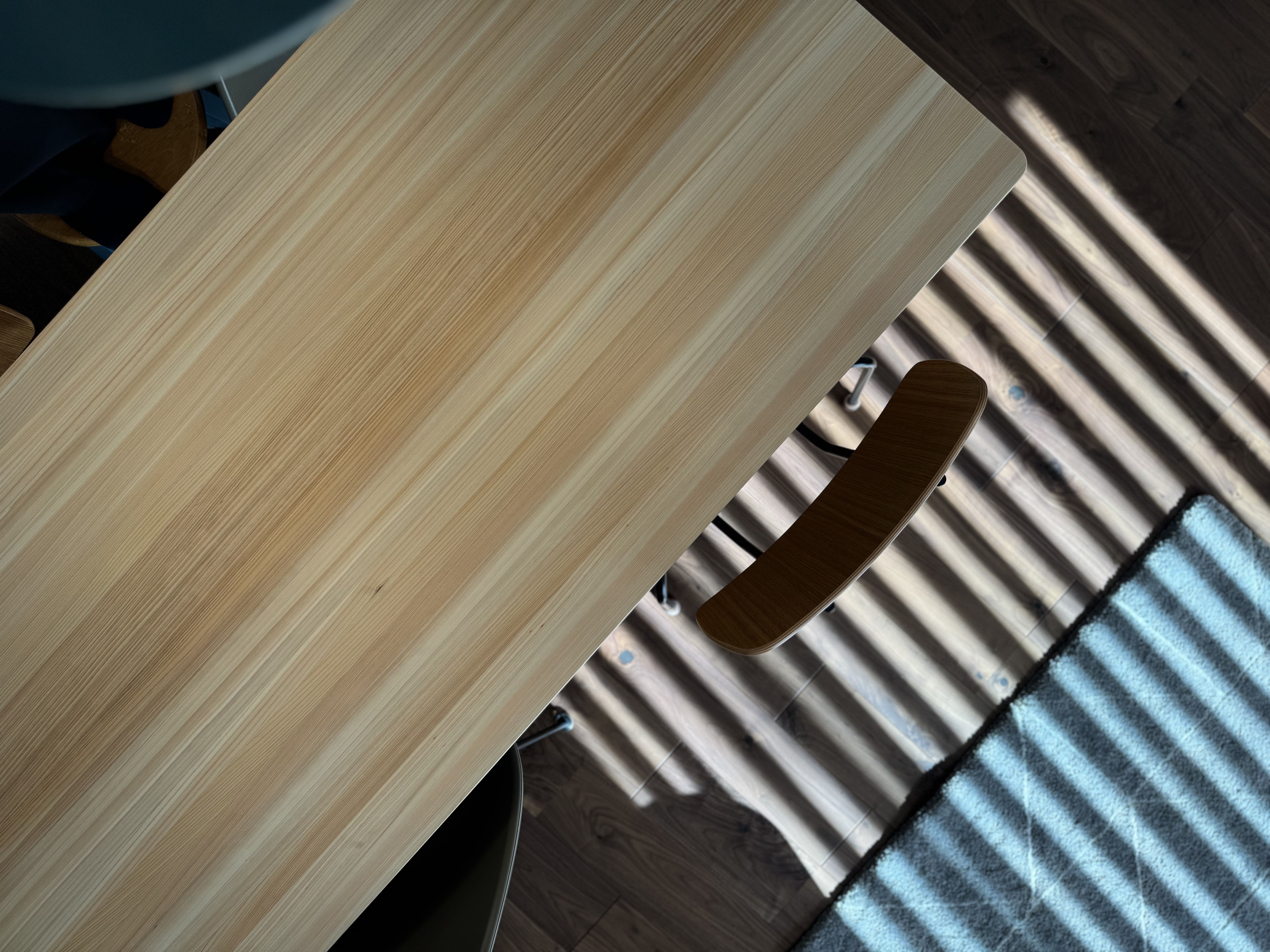 神社や住宅の建築材や、生活用品に用いられ古くから親しまれてきたヒノキのテーブルはどこかほっとする存在。ヒノキの家具はめずらしいものの、軽やかさのあるデザインで意外にもさまざまなイスと合わせやすく空間になじみやすいのも魅力。MASはそんな針葉樹の新たな魅力を引き出しながら、日本の森林資源を活用したものづくりをおこなっています。