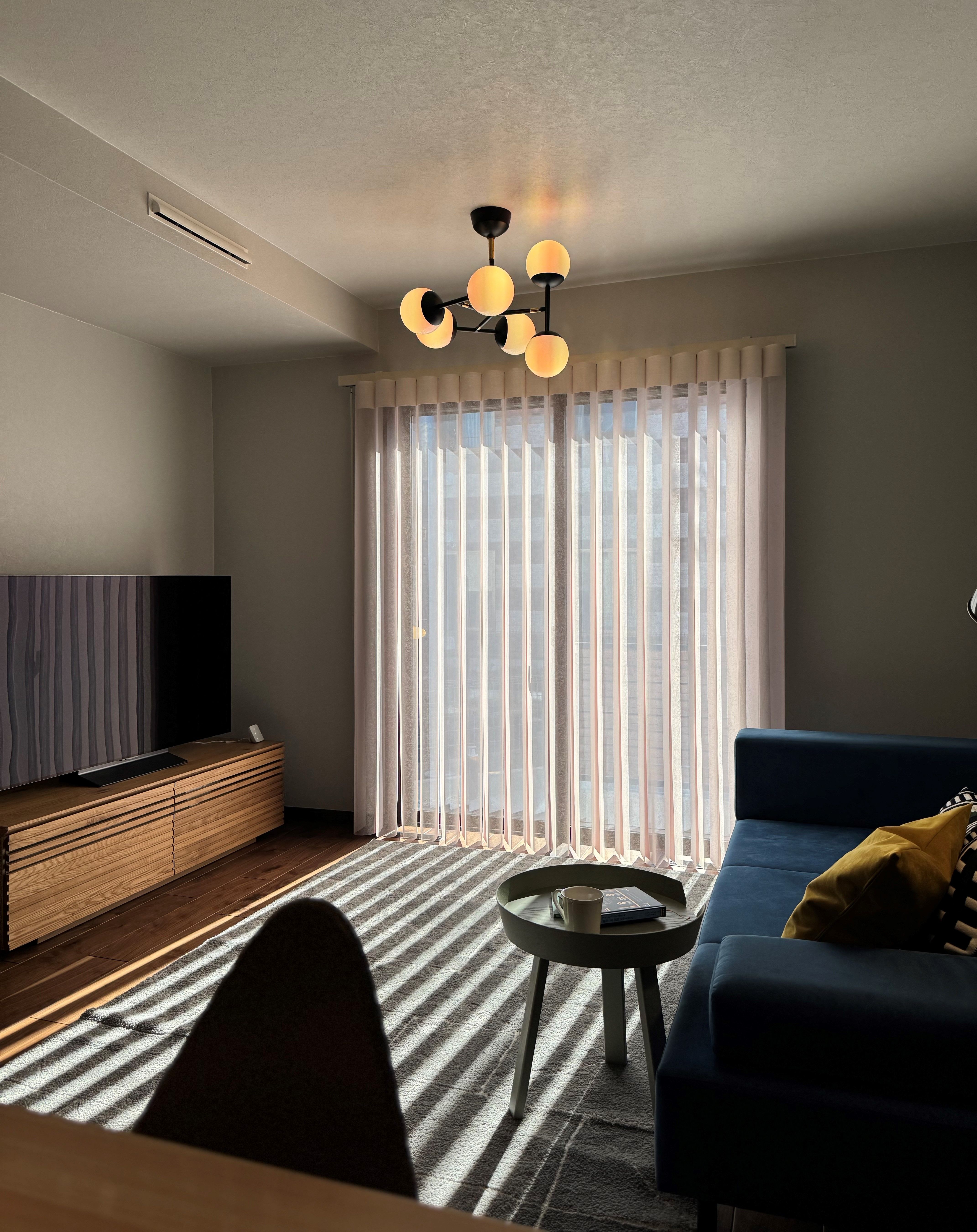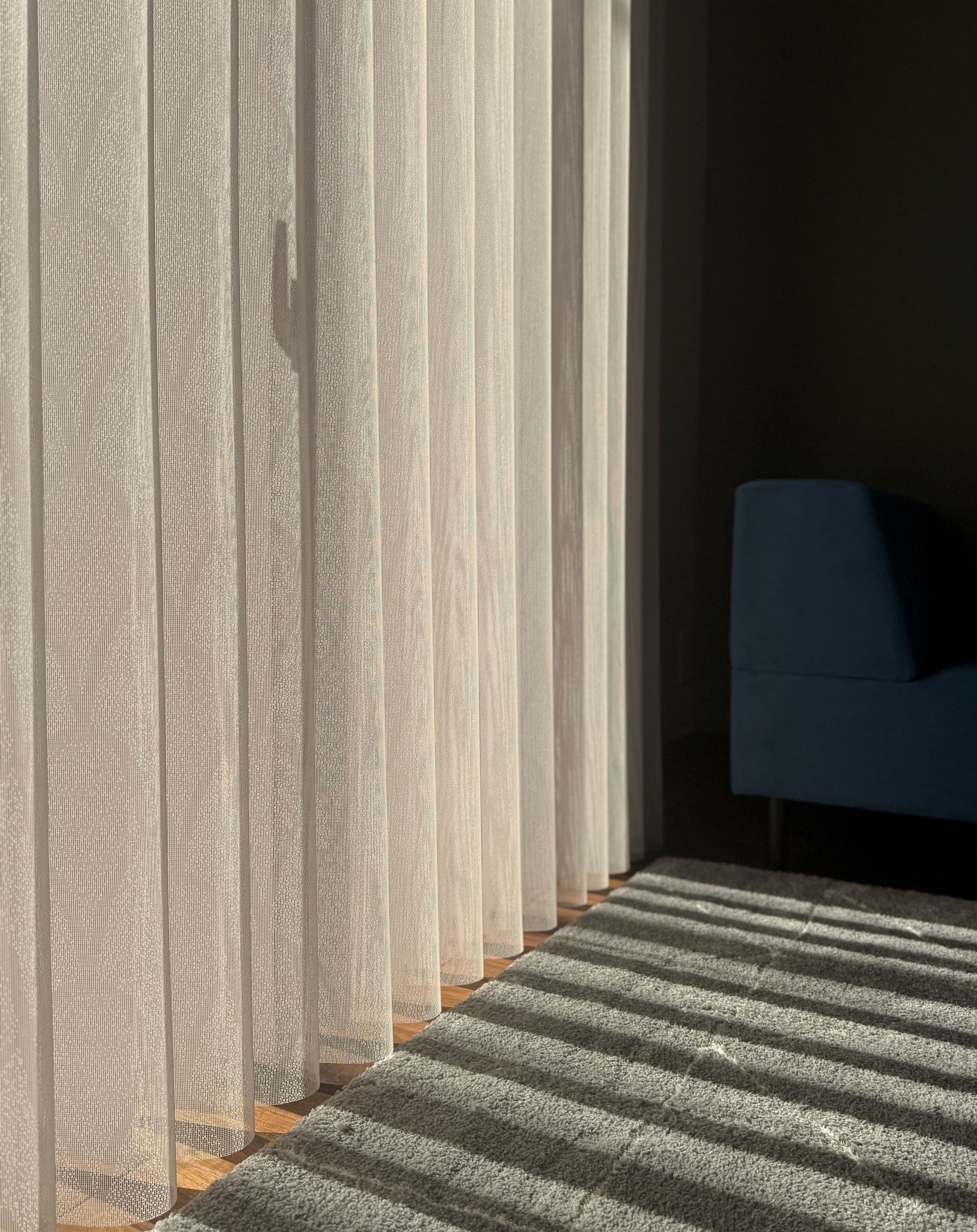 対照的にシェードは開閉によって生まれるストライプの影が空間演出のような効果を発揮。