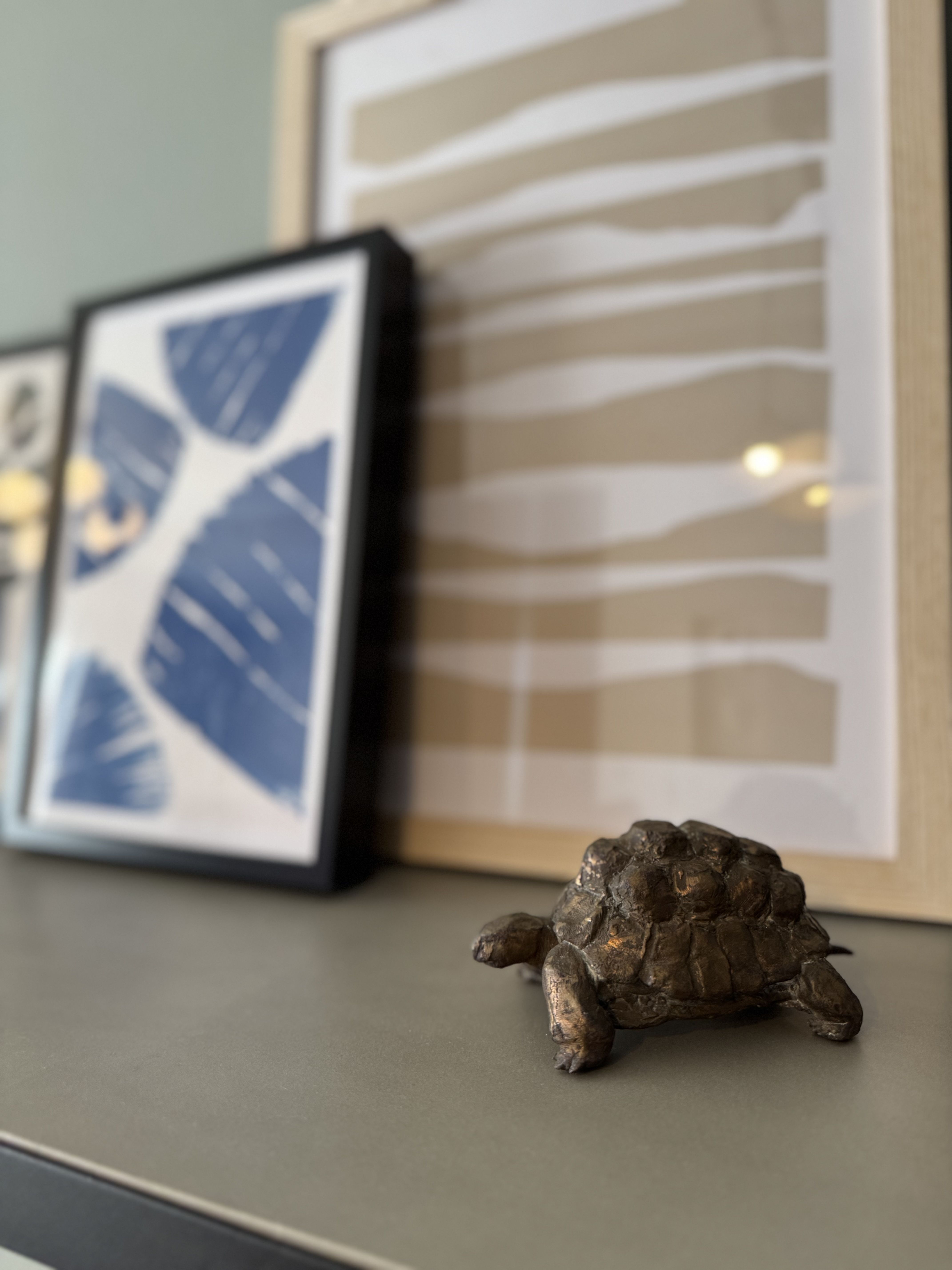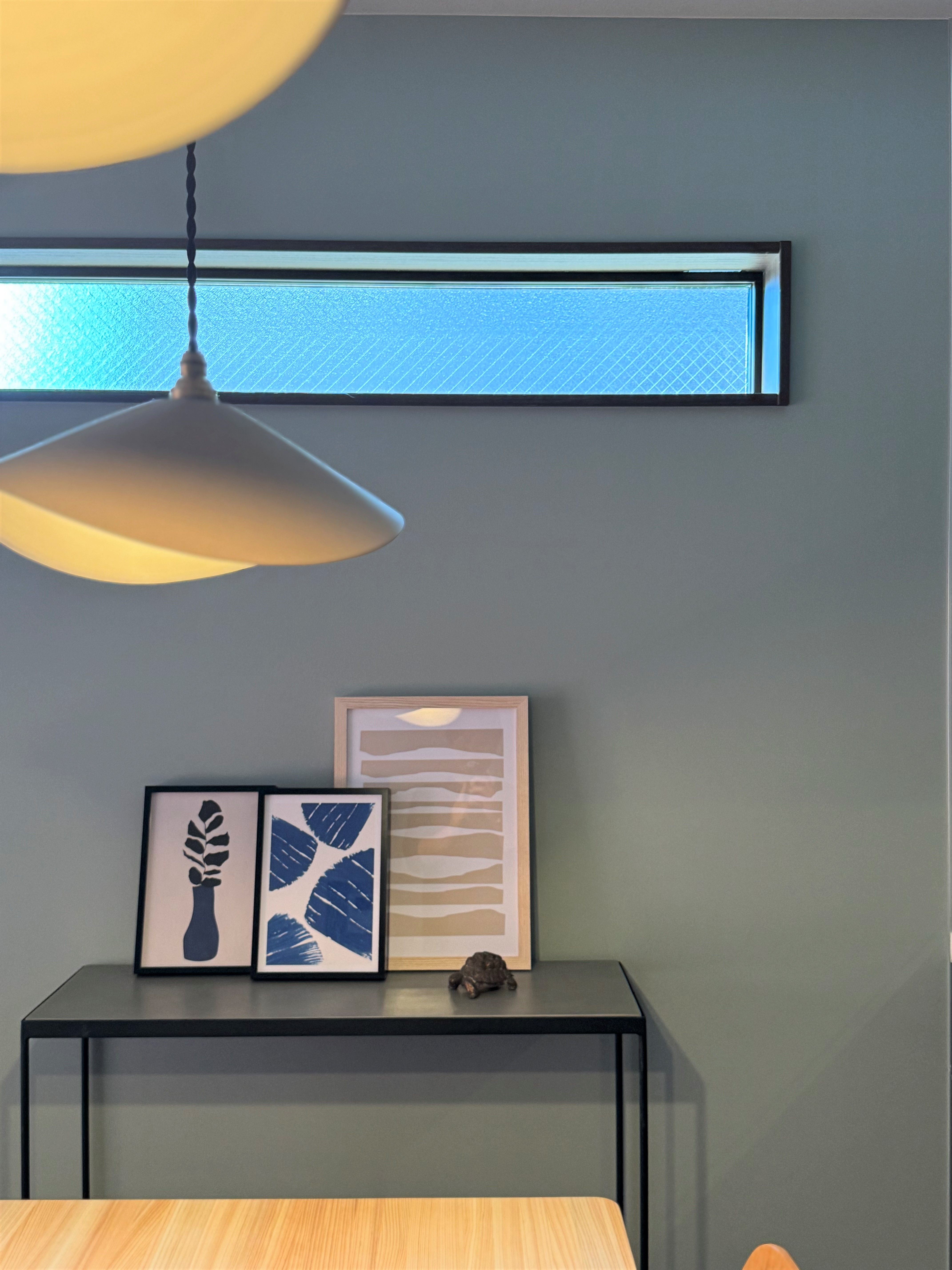 少しのゆとりを活用して、奥行きの浅いコンソールテーブルを壁付けに設置。好きなアートやオブジェを置くと一気におしゃれに。花やグリーン等も飾りたくなります。