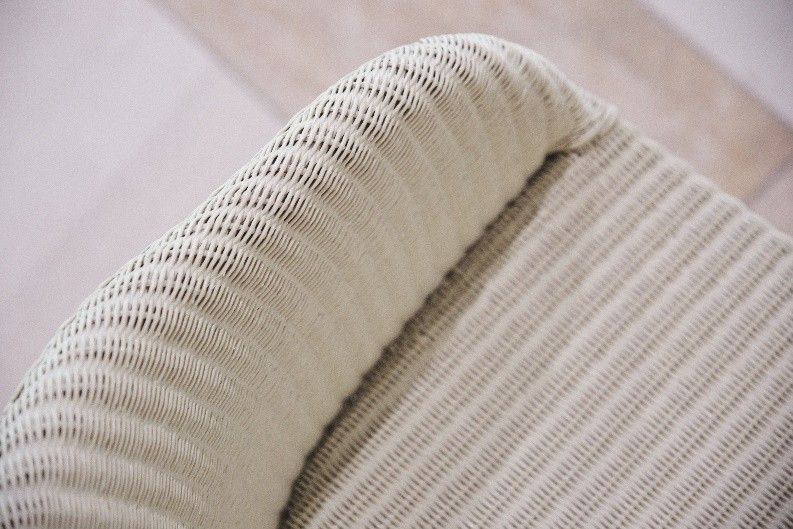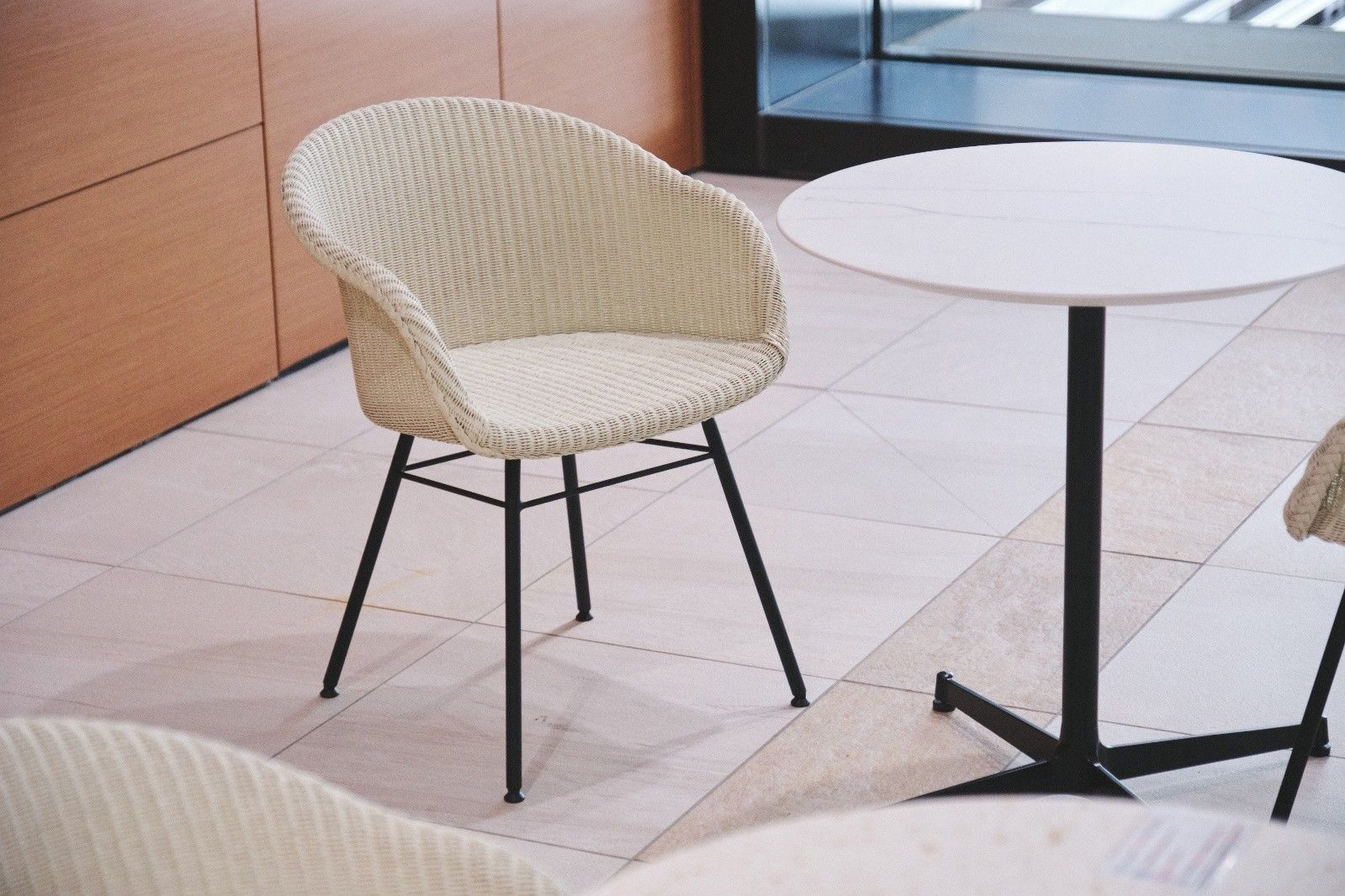 カフェテーブルにはラタン編みが軽やかなチェアをセレクト。