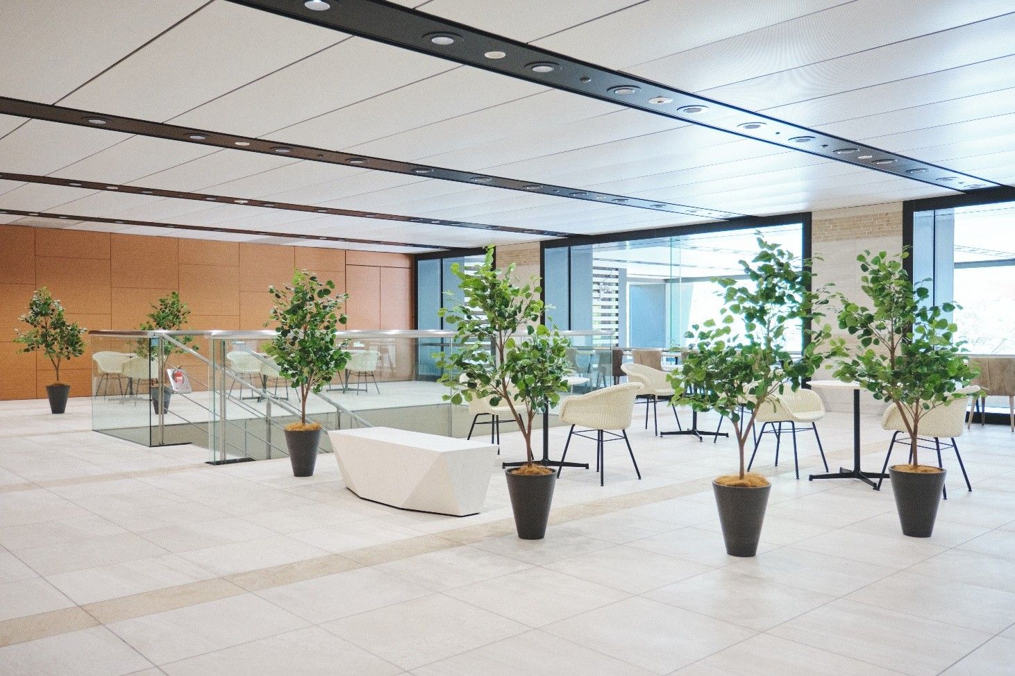オフィス施設であるセントラルタワー2階のエントランスホールは、広々とした抜けのある空間