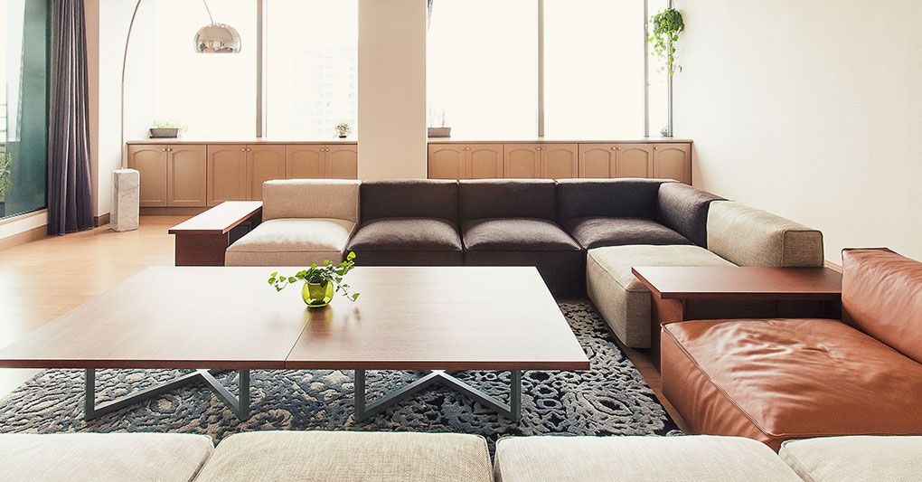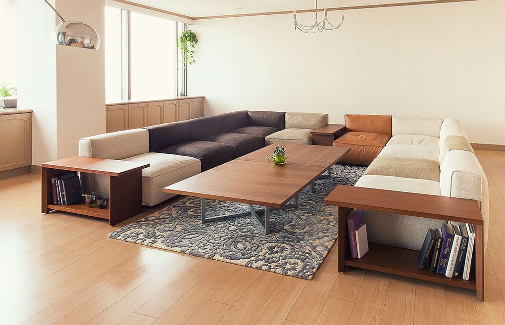 レイアウトフリーのモジュラーソファのため、1ピース単位で配置を自由に変更することも可能。