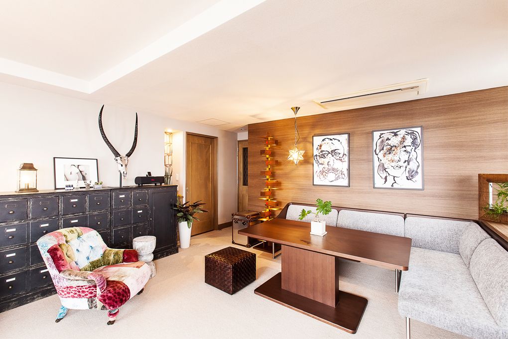 都会の喧騒の中でほっと一息つける、大人のくつろぎと遊び心を感じさせる一部屋に仕上がっています。