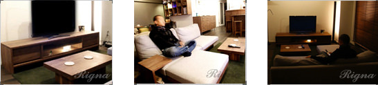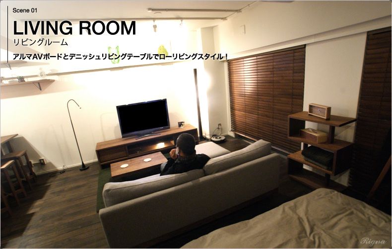 メインソファーはリグナ一番人気のデニッシュソファー&オットマンで決まり!!アルマAVボードとデニッシュリビングテーブルでローリビングスタイルの完成!この場所で過ごす時間が長くなりそうなそんな空間の出来上がりです。