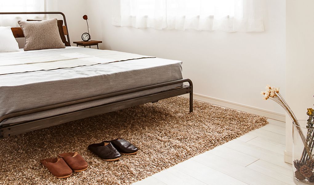 冷たい印象を与えがちなスチールの質感も、柔らかな色合いのシャギーラグやリネンと合わせると、どことなく優しい表情に。