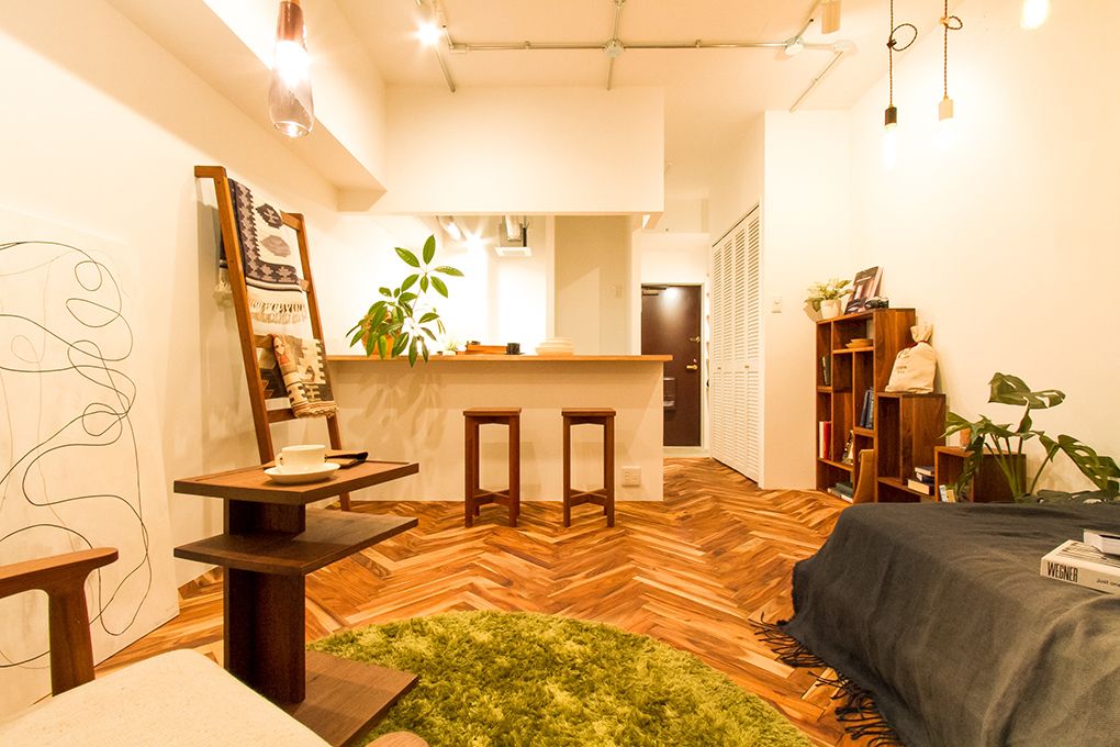 第2弾は「アカシアのヘリンボーン床」が特徴的な浅草のワンルーム。