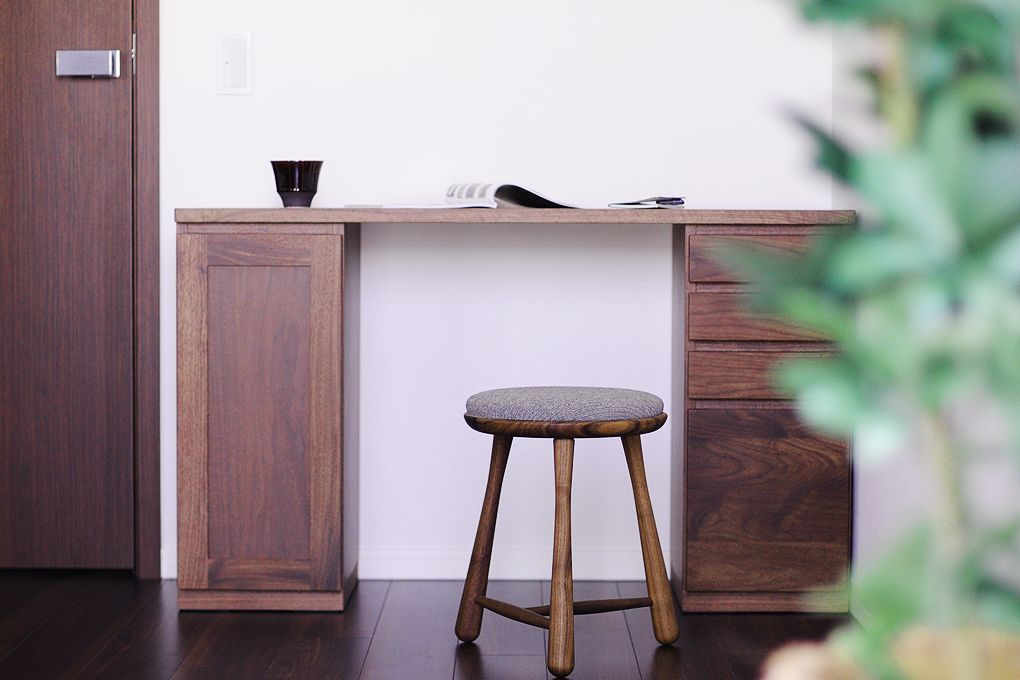 直線的なラインで構成された空間の中に”ちょこん”とスツールがひとつ。