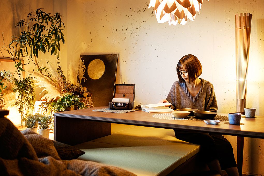 自由で、生き生きとしたグリーンには光を当ててあげましょう。暖かくて、ぬくぬくとしたコタツにはみかんを置いてあげましょう。