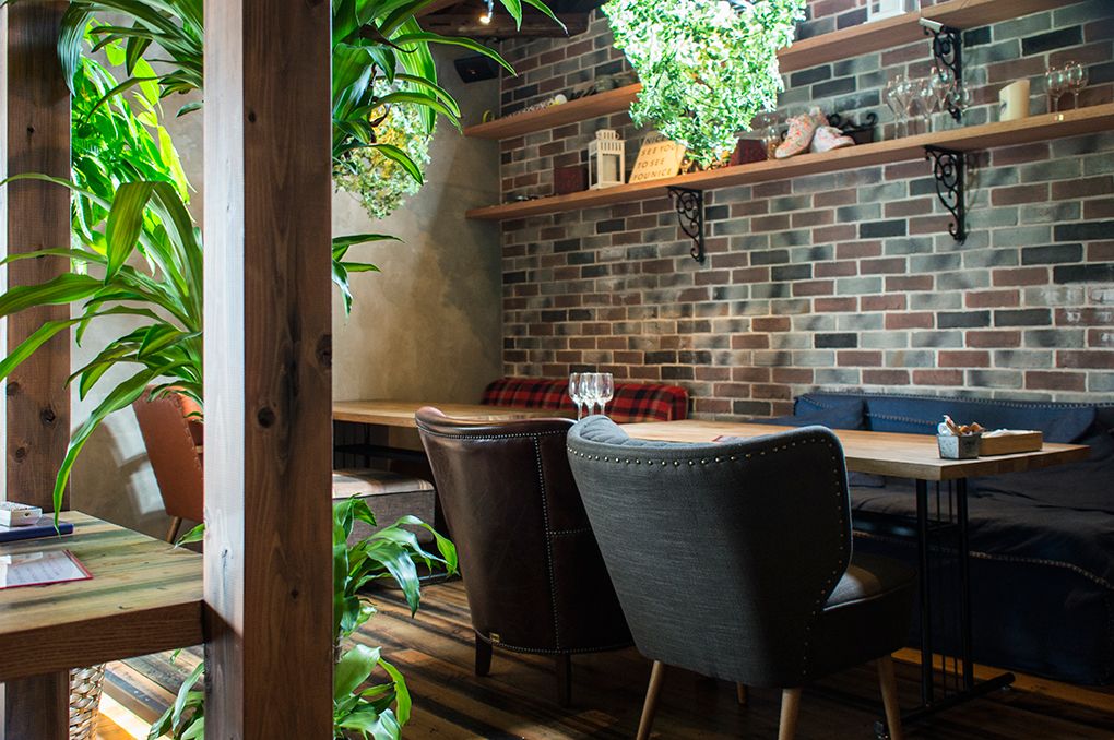 NYブルックリンを想起させるような、ラフでヴィンテージ感のある素材遣い、そしてグリーン。家具は統一せず、まるでひとつひとつアンティークを買い集めてきたような。