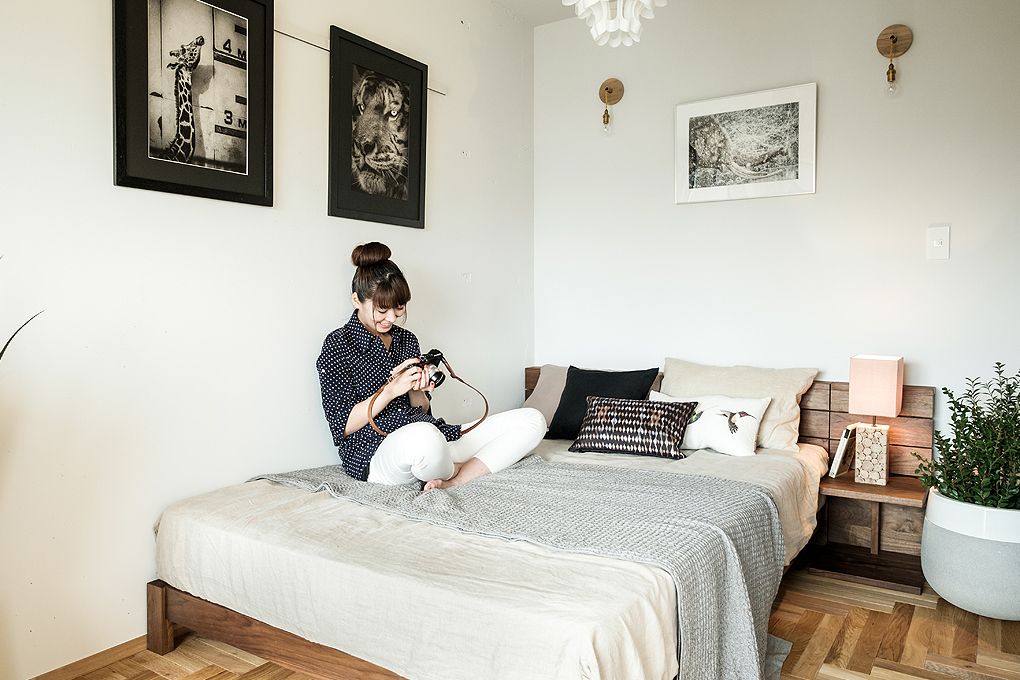 壁に寄せたベッドが教えてくれるのは、壁にもたれることの心地よさです。