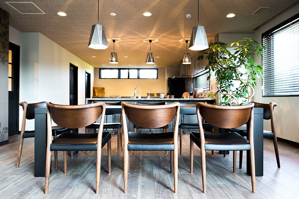 色や素材ではない、フォルムによるアクセントとし、目で楽しく触れて心地よいダイニングエリアとなりました。