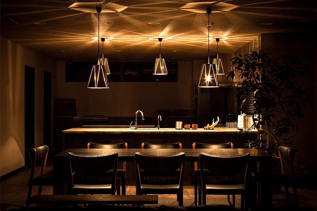 ペンダントライトから漏れるエッジの効いた光との対比もまた面白いです。
