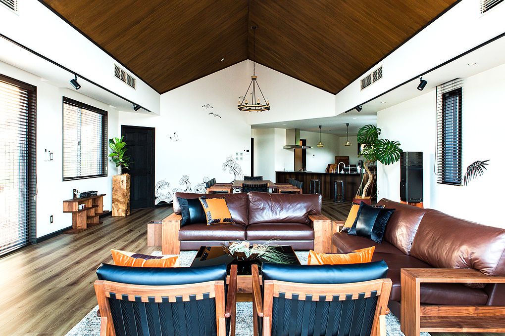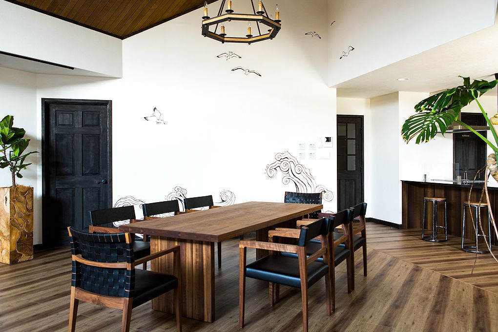 ケアンズハウス同様にご提案はインテリアのコーディネートと内装のアドバイス。ウッドとレザーをベースに、遊び心でスチールやガラスなどでアクセントを。