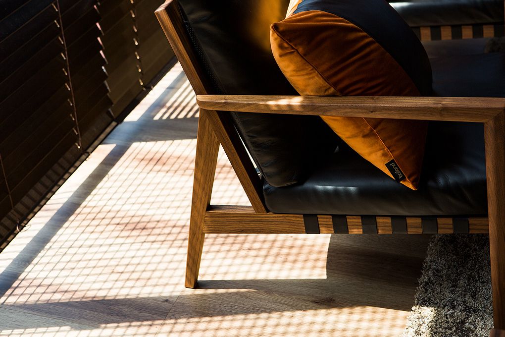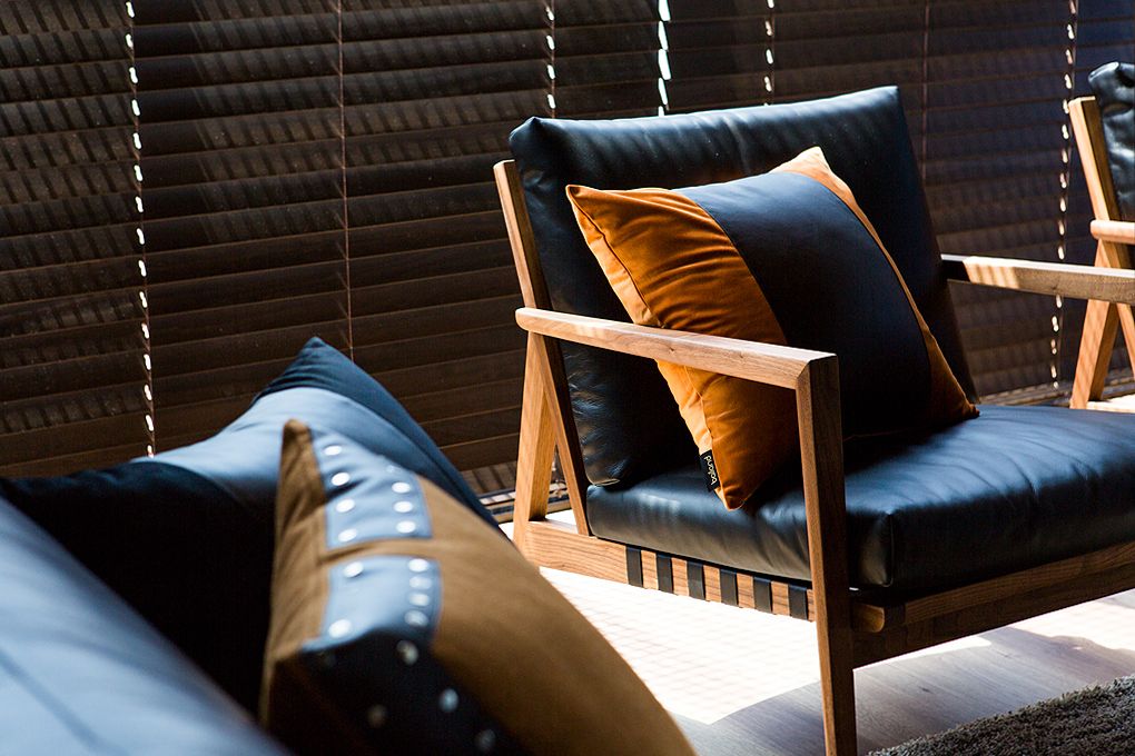 シャープなデザインのクッションや、レザーの素材感などで動きのある仕上がりとなっています。