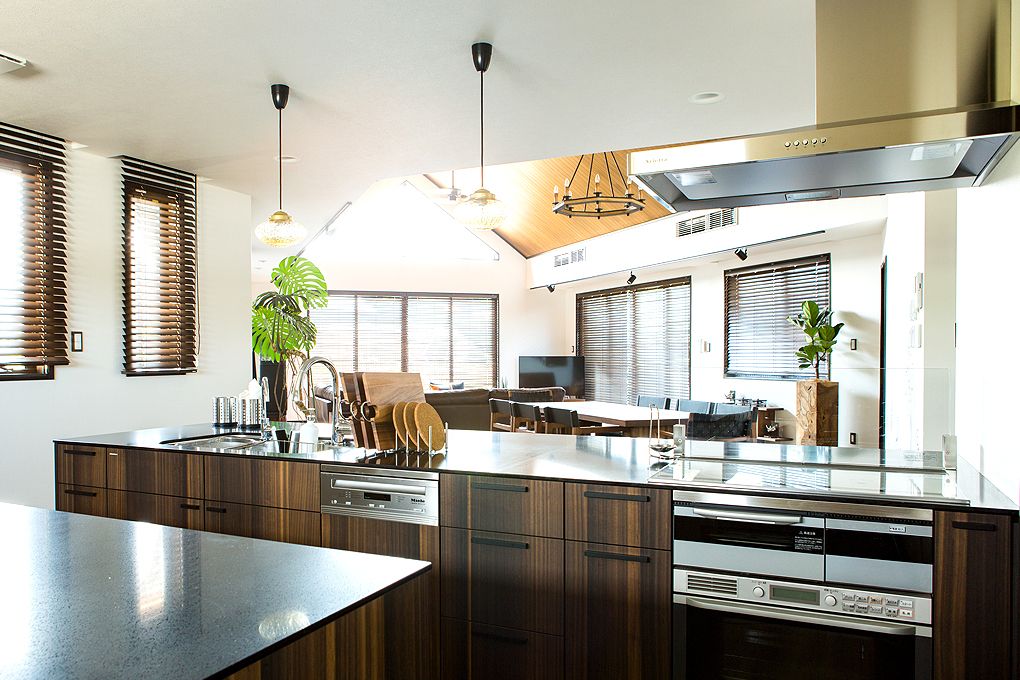 ダイニング、リビング、エクステリアへと続く抜け具合を最も感じられる場所。
