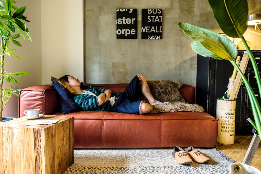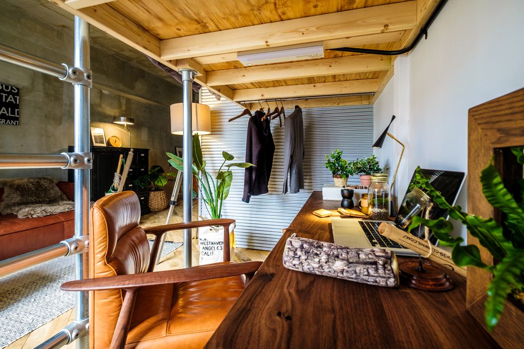 ロフトを隔てて生まれる2つのシーン。パンチの効いたドライ空間に、Rignaのレザーで潤いを。