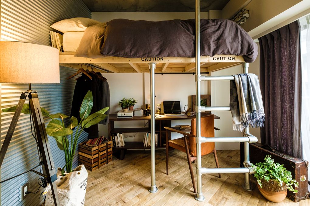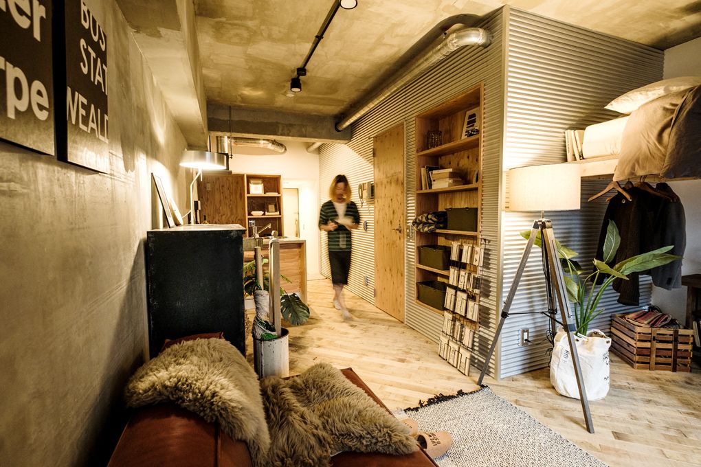 つづく第24弾、モルタル、ブリキトタン、スチールパイプなどの素材感が印象的なオトコっぽさ全開のワンルームです。