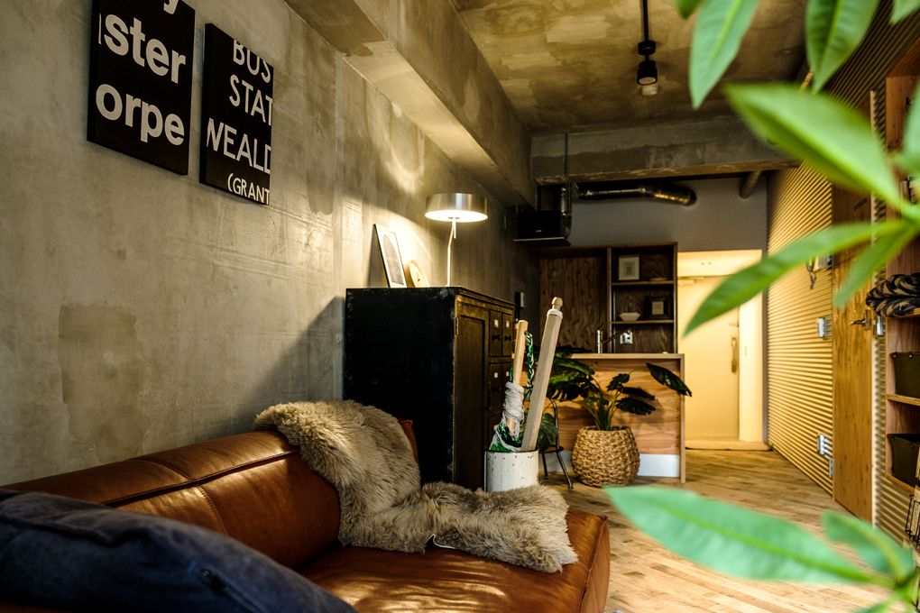 ひとつひとつの素材感が強く異彩を放つワンルーム空間です。