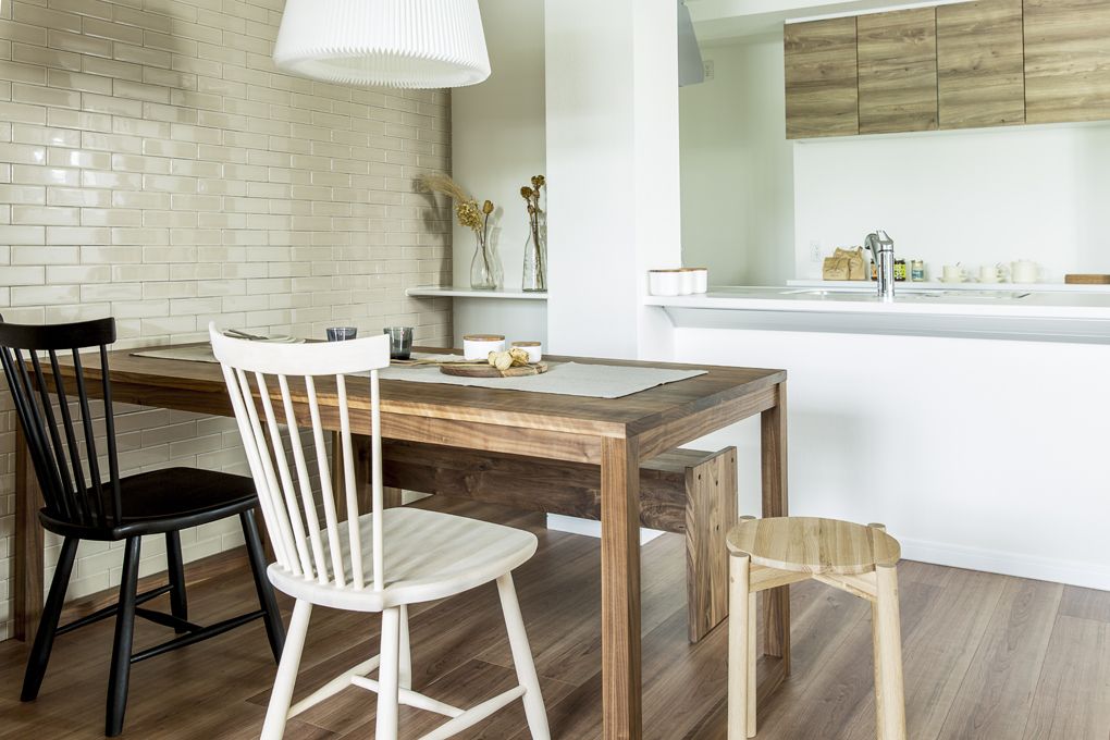 ウォールナット無垢材のシンプルなかたちのダイニングテーブルに合わせたのは、