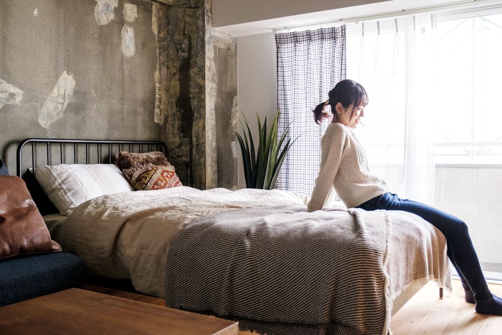 そう、「日向ぼっこ」を。ベッドに腰掛け、足を投げ出して、力を抜く。午後への活力、充電中。